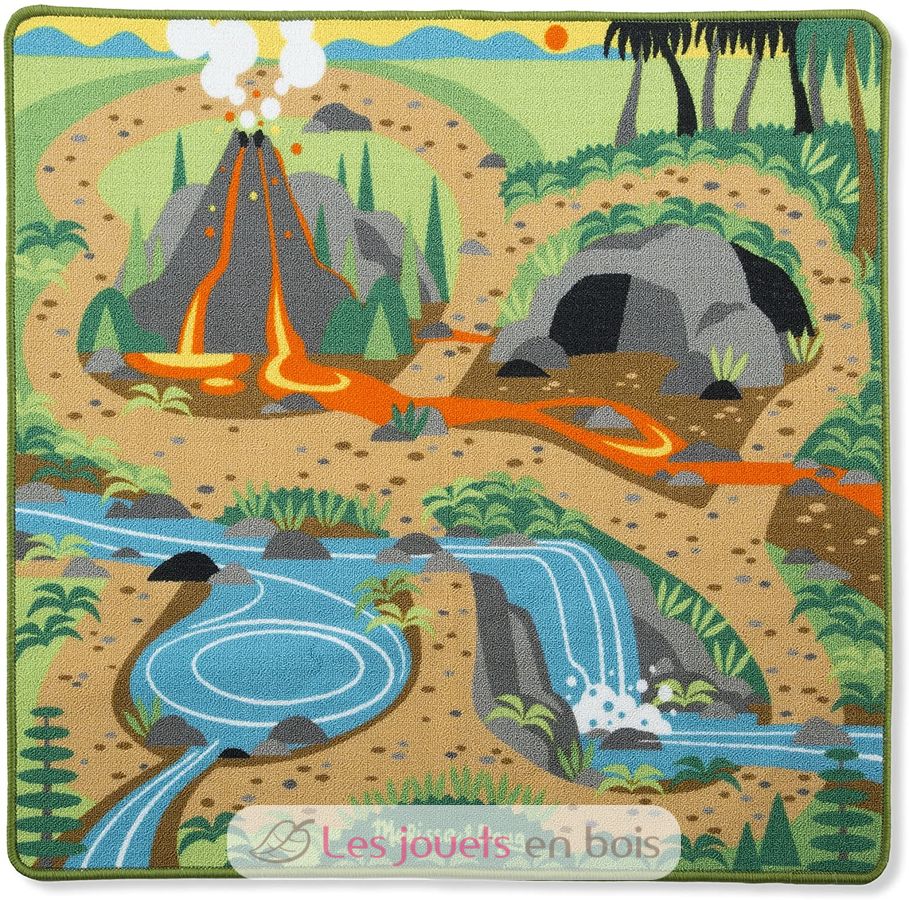 Erwecken Sie mit dieser robusten und farbenfrohen Dinosaurier-Spielmatte die prähistorischen Riesen zum Leben, die vor Millionen von Jahren die Erde durchstreiften! Die gewebte Matte mit rutschfester Unterseite ist langlebig gestaltet, um unzählige Spielstunden gut auszusehen. Sie enthält vier beflockte Dinosaurierfiguren (T-Rex, Triceratops, Stegosaurus, Apatosaurus) und verfügt über Details wie einen sprudelnden Vulkan, einen Wasserfall und einen Fluss , coole Höhle, Dschungel und Grasland bieten viele kreative Spielmöglichkeiten. Das große Format ist groß genug für mehrere Kinder und jede Menge Dinosaurier.