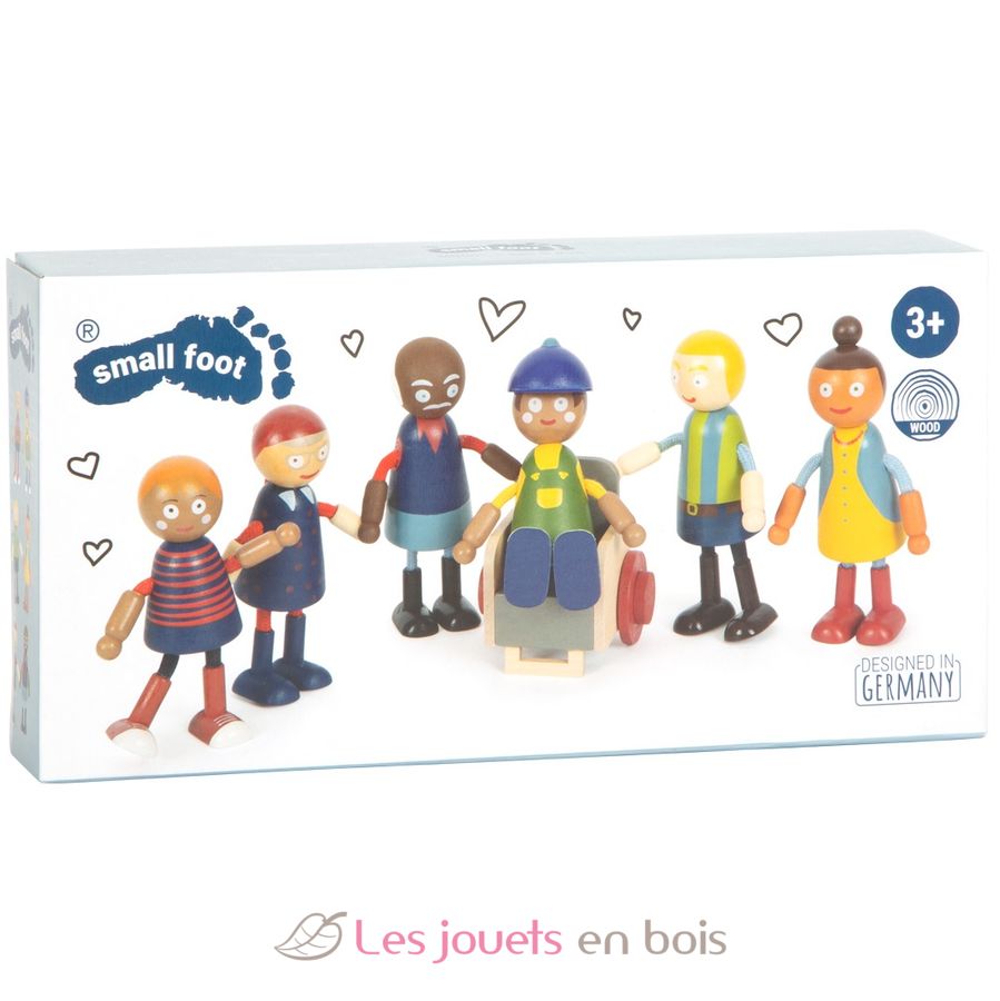 Mit der modernen 6-köpfigen Puppenfamilie aus Holz zieht Vielfalt ins Puppenhaus ein! Die Biegepüppchen unterschiedlichen Geschlechts und Alters sowie unterschiedlicher Hautfarbe verfügen über einen Kopf und Rumpf aus solidem Holz, während ihre biegsamen Arme und Beine jeder Rollenspielsituation im Puppenhaus gewachsen sind. Körperliche Einschränkungen was Sehen oder Gehen betrifft können durch Details wie eine Brille und einen Rollstuhl, der keiner bestimmten Person zugeordnet ist, ins Spiel integriert werden.