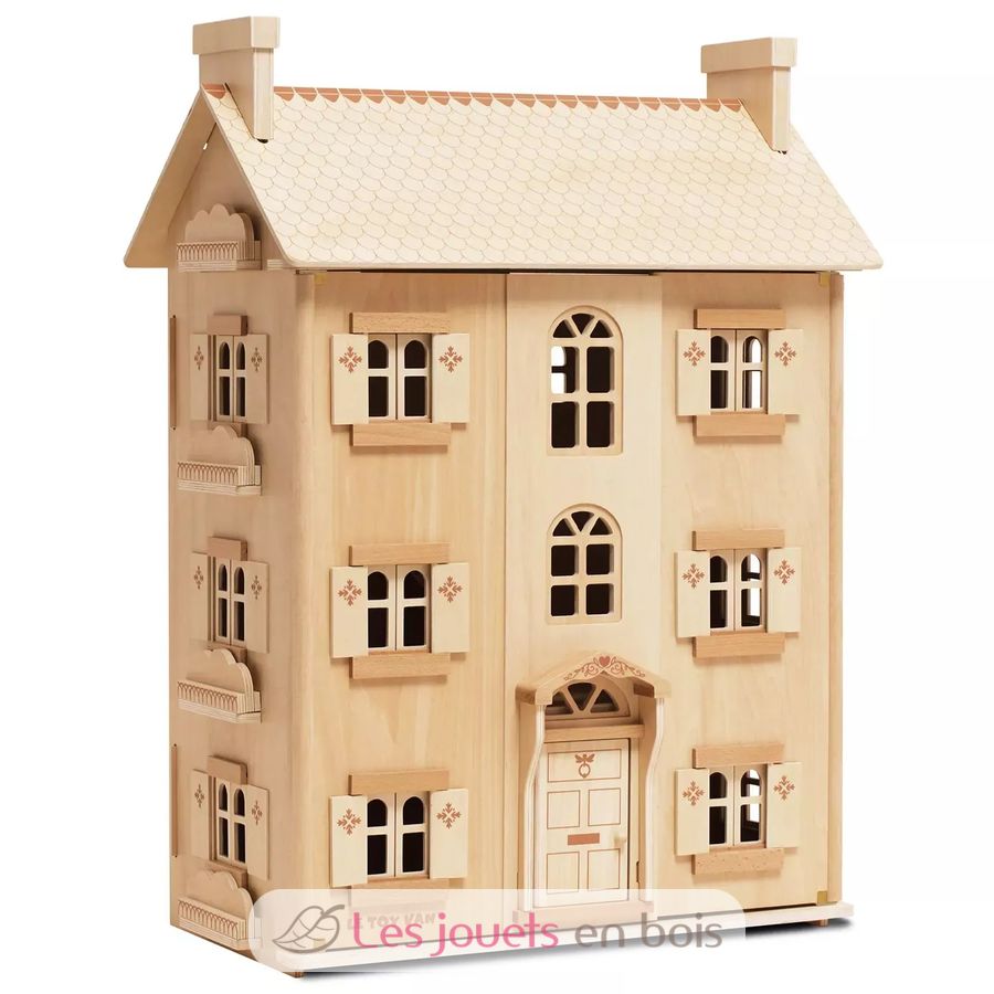 Mit vier Stockwerken, zu öffnenden und schließenden Fenstern, Fensterläden und Türen ist dieses wunderschön detaillierte Haus wie geschaffen für endlose Geschichten und fantasievolles Spielen.