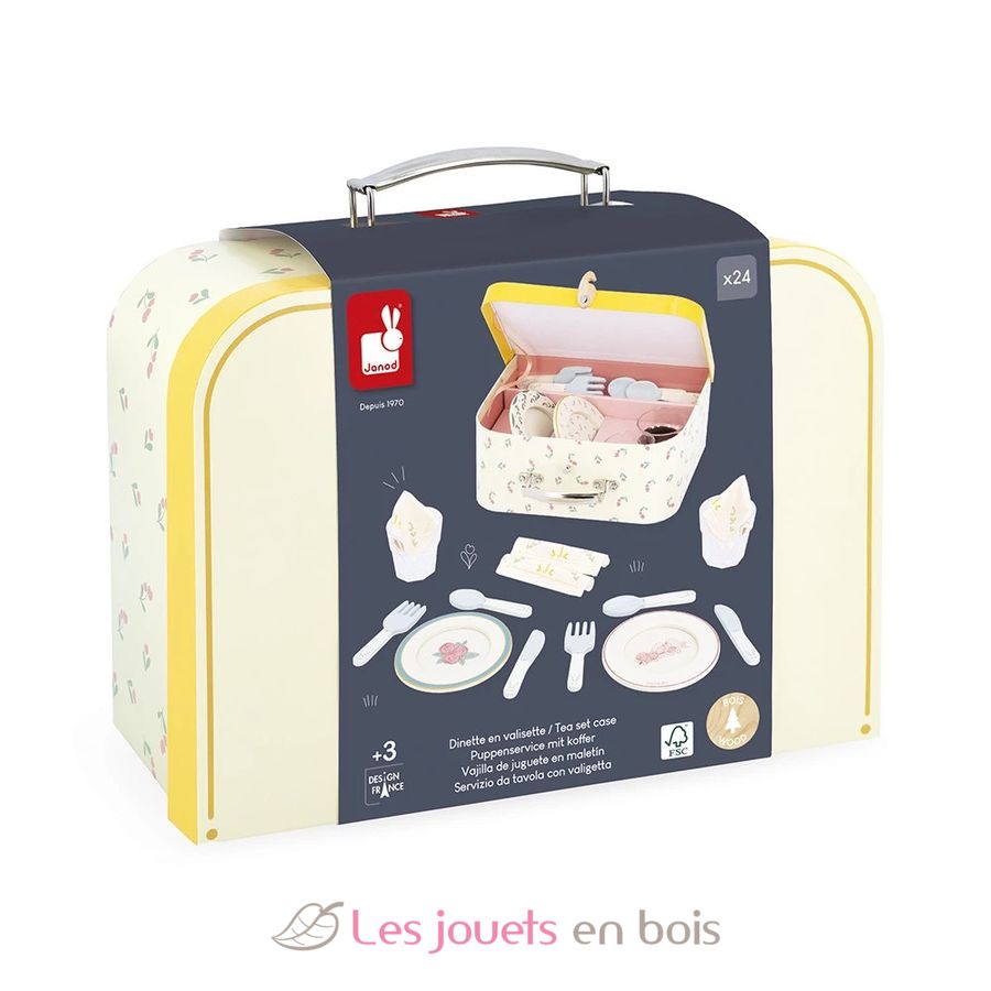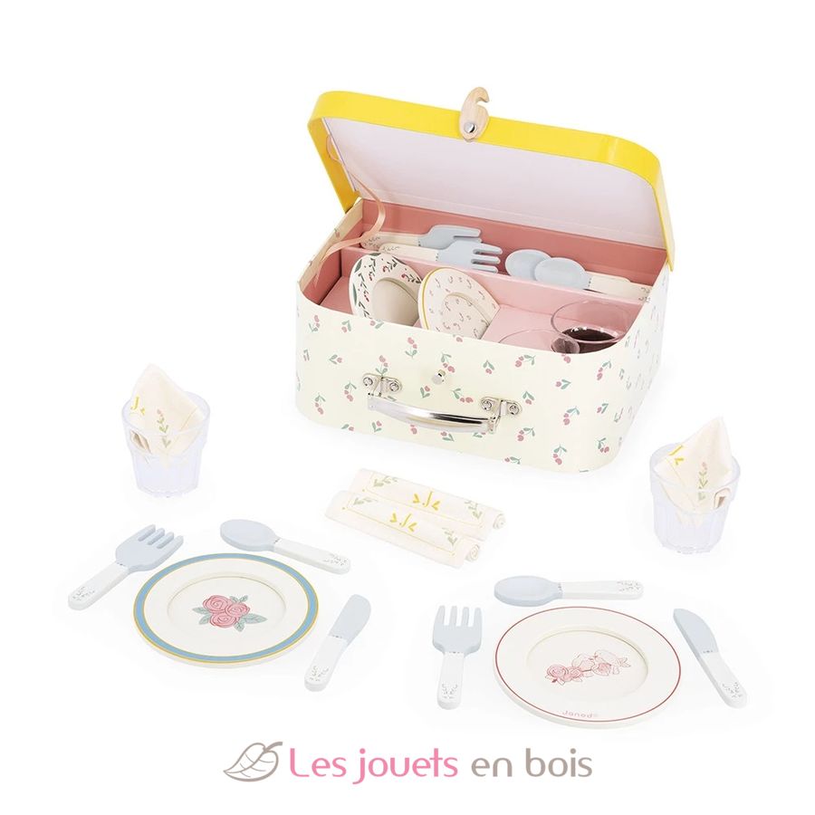 Puppenservice mit Koffer, ein Nachahmungsset der Marke Janod. Referenz J06637.