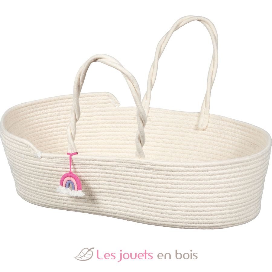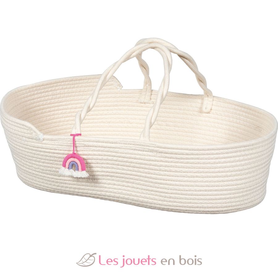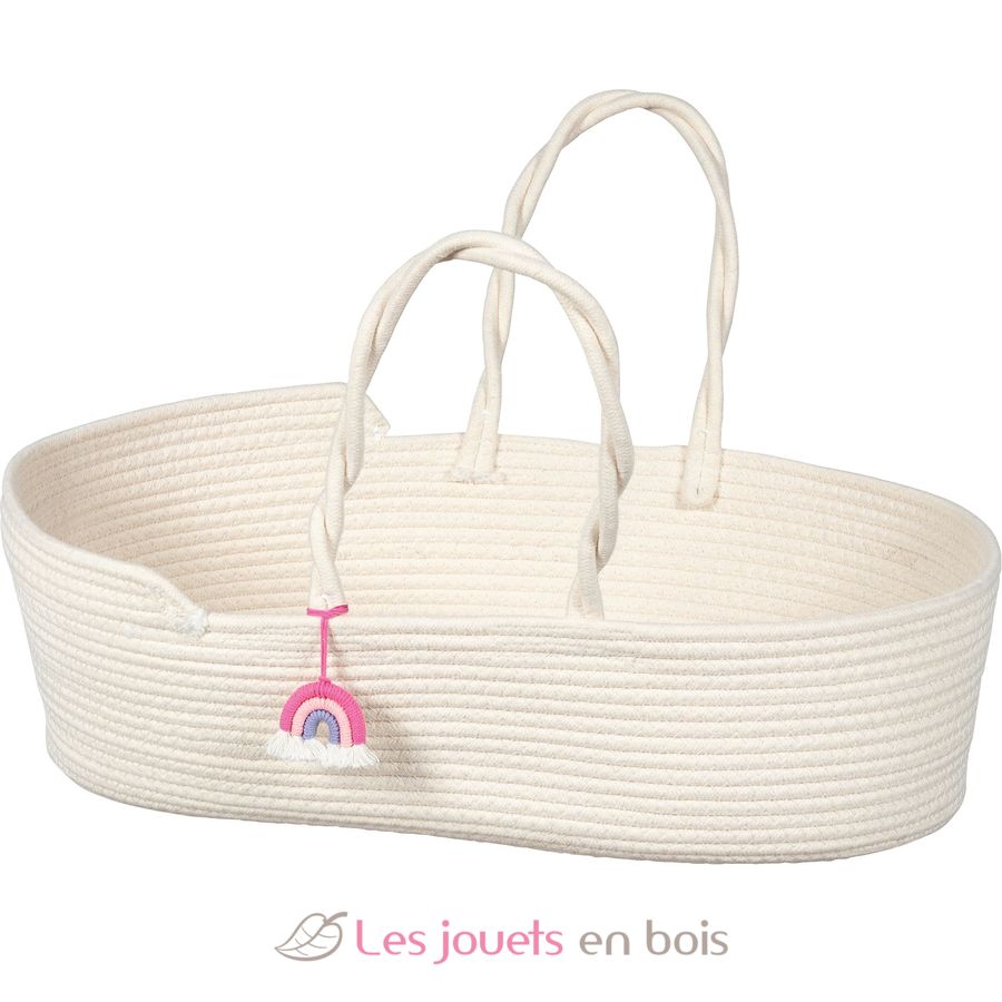 Sie ist mit einem kleinen, abnehmbaren Regenbogen verziert, der für einen fröhlichen Farbtupfer sorgt. Der Puppenkorb ist robust gefertigt, angenehm leicht und optimal auf kleine Kinderhände abgestimmt.