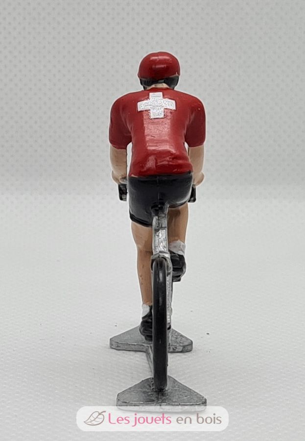 Figur eines Radfahrers, Modell R (Rouleur), bemalt in den Farben des Schweizer Meistertrikot.