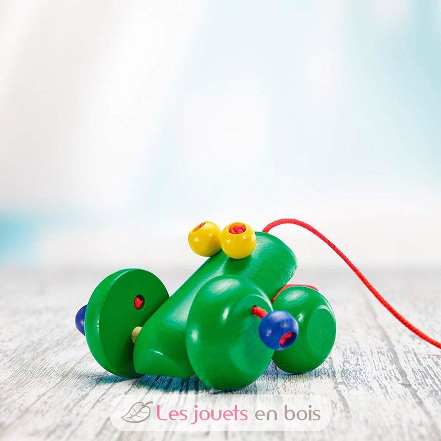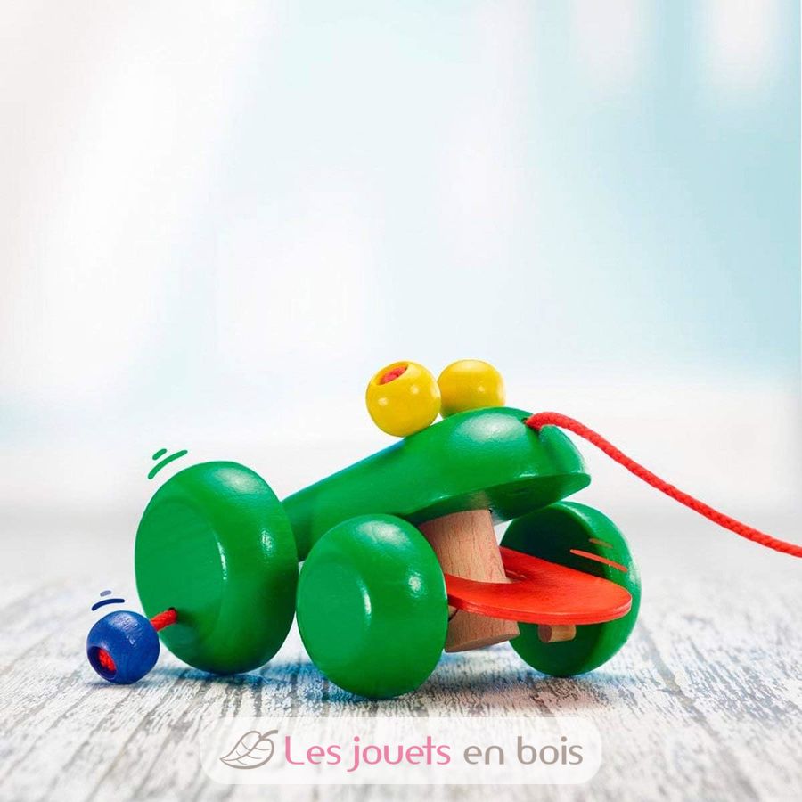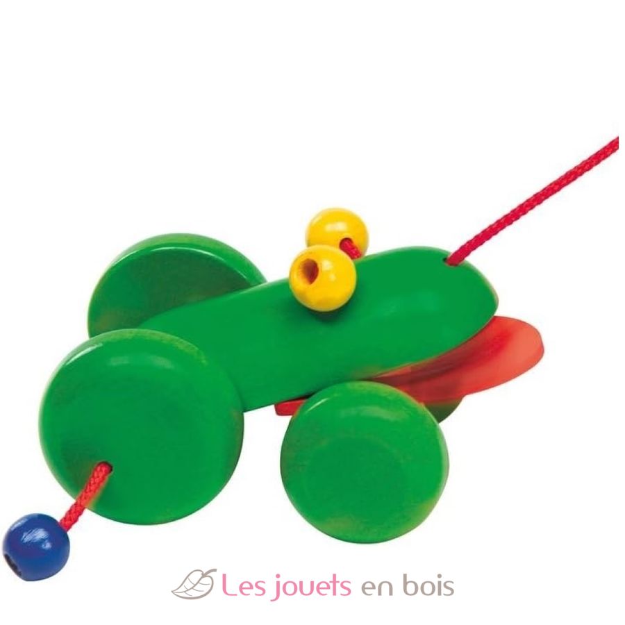 Sehr fett kleiner Frosch! Sie krächzt ständig mit seinem großen roten Mund << coâ-coâ-coâ. >> Mit lustigen gelben Augen und Grünkörper wie Gras, es ist eine wahre Spielzeugs und der perfekte Begleiter für Kleinkinder. Ein Holzspielzeug Zug in Deutschland von Selecta gefertigt.