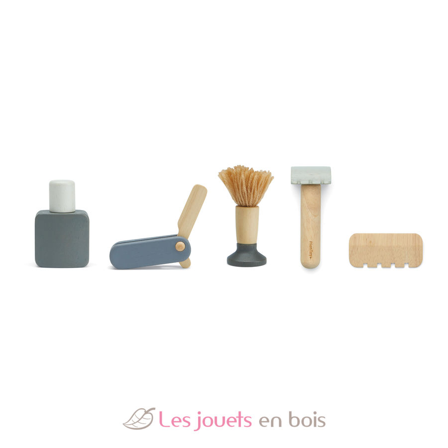 Dieses hölzerne Rasierset für Kinder vereint alle Werkzeuge, die Sie zum Rasieren wie Papa benötigen!