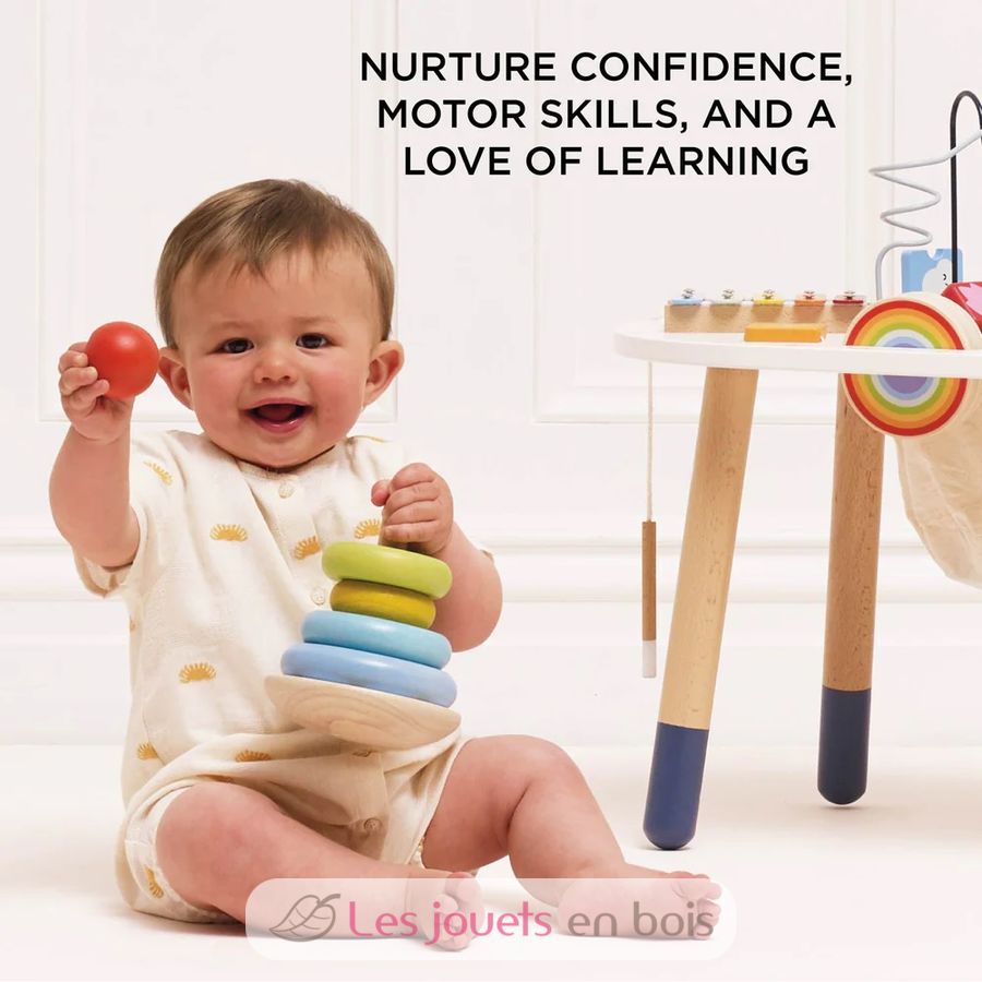 Dieses nachhaltige Babyspielzeug aus massivem FSC-zertifiziertem Holz und in Regenbogenfarben lackiert bringt Farbe in jede Spielstunde von Babys ab 18 Monaten.