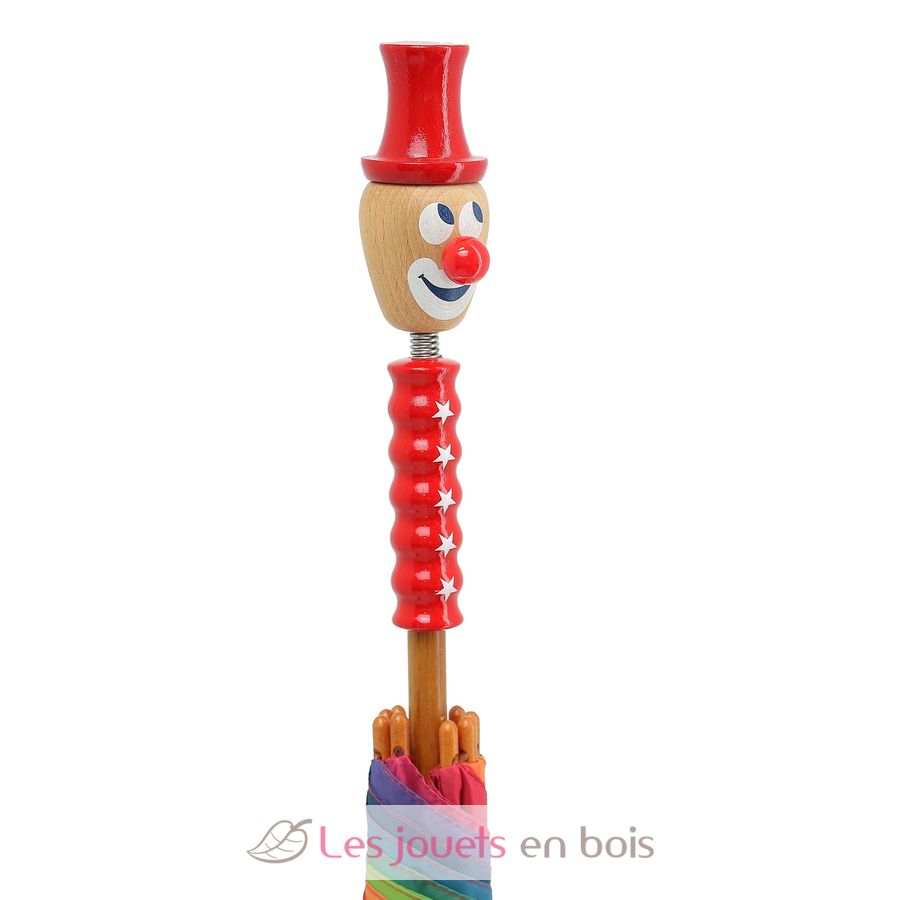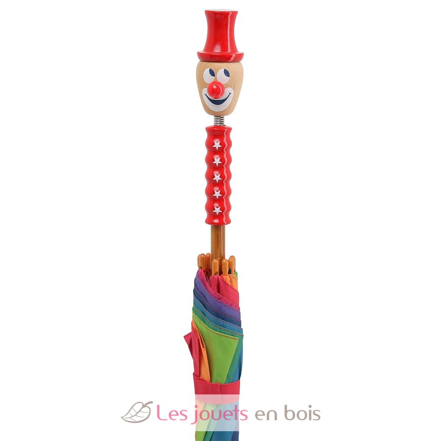 Selbst im Regen setzt der Clown seinen großen roten Hut auf und lächelt weiter! Ein robuster und farbenfroher Regenschirm, der Regentage erhellt.