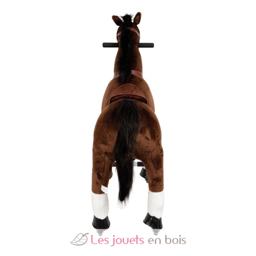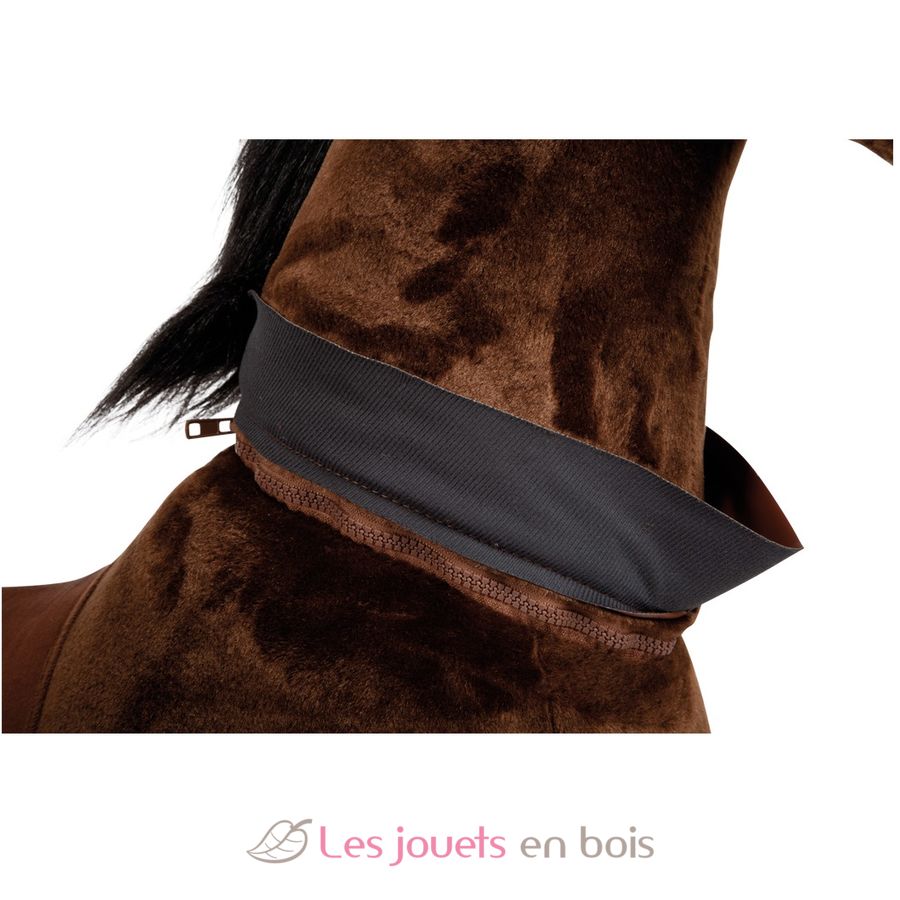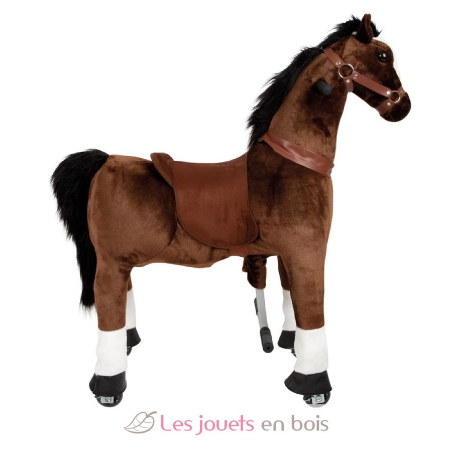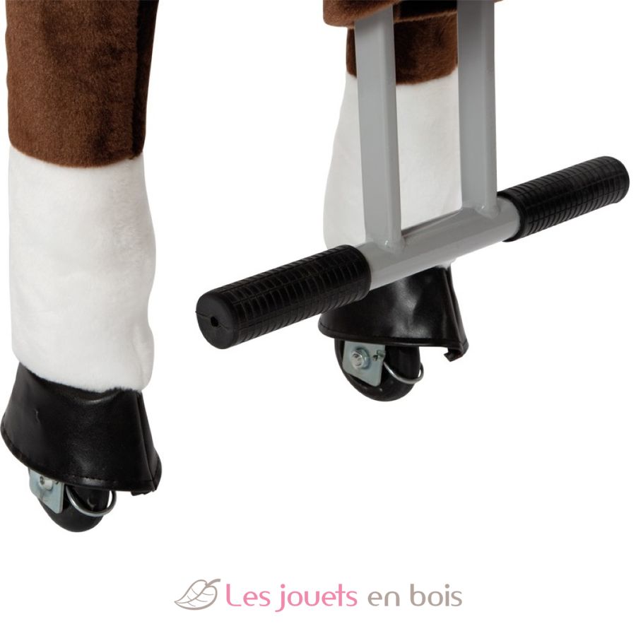 Das braune Reitpferd aus Plüsch kann von kleinen Pferdeliebhabern durch Betätigung des Fußpedals in Bewegung gesetzt werden und anhand der seitlichen Handgriffe in die gewünschte Richtung gelenkt werden. Mit robusten Inline-Skates-Rollen zur zügigen Fortbewegung. Für realistisches Rollenspiel sorgen der abnehmbare Sattel und Trense sowie Mähne und Schweif aus Plüsch zum Frisieren. Das plüschige Fell kann durch den Reißverschluss komplett abgenommen und gereinigt werden.