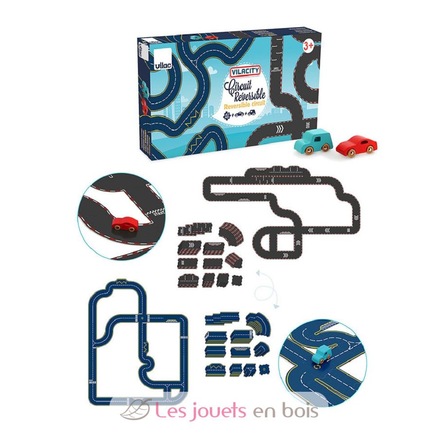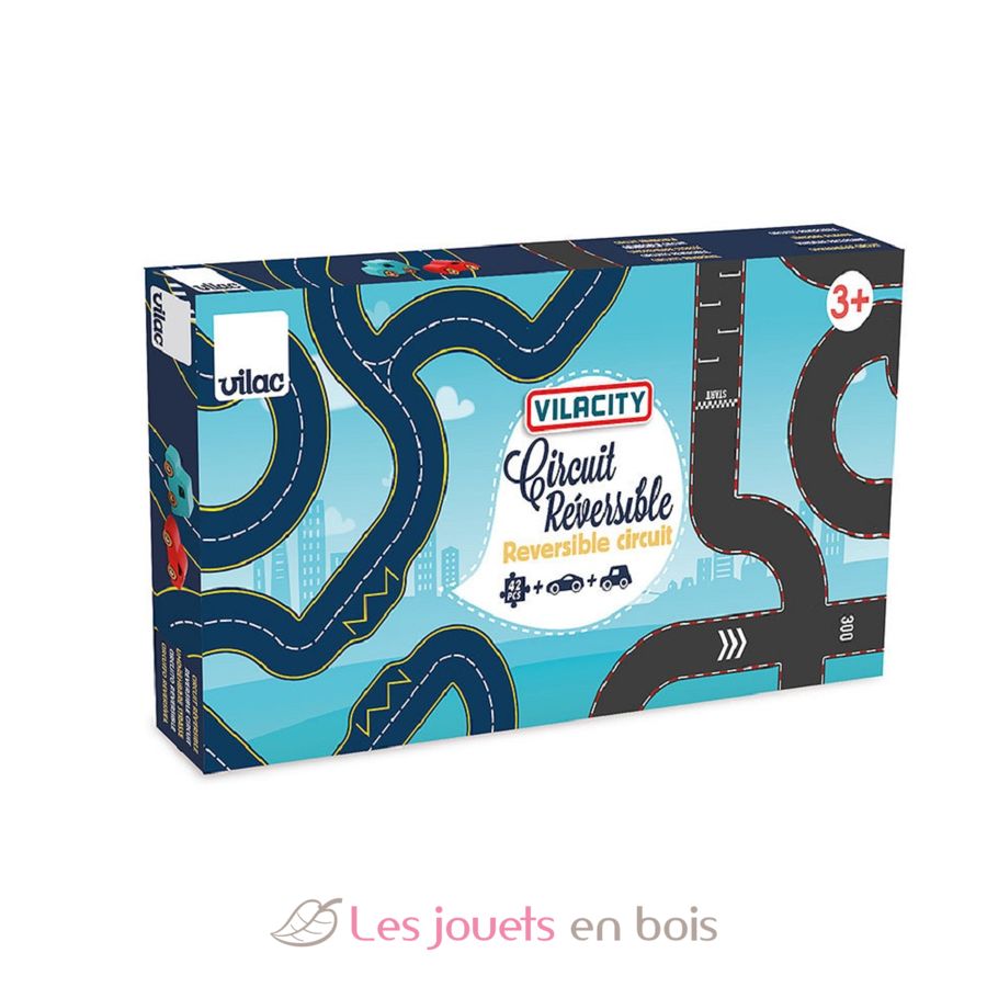 Rennbahn Doppelseitig Vilacity mit 2 Autos, eine Miniaturbahn von Vilac. Artikelnummer 2350.