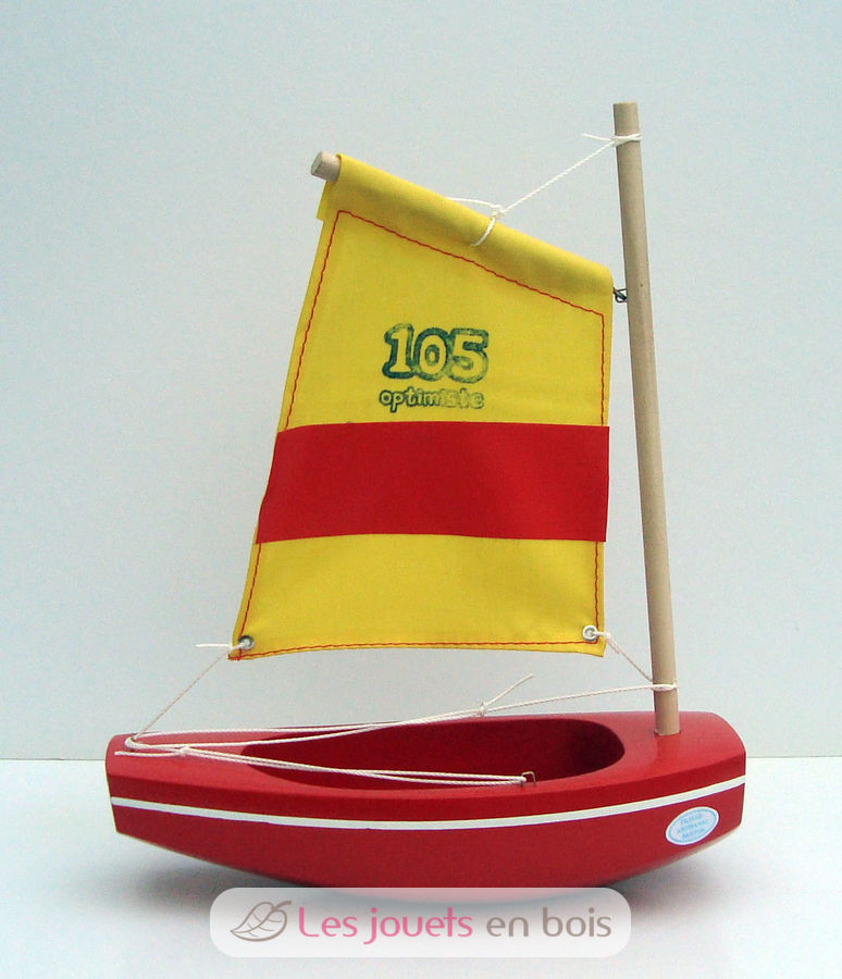 Roter Thunfischfänger mit einem roten und weißen Segel. Dieses großartige Boot aus Buche ist schiffbar garantiert. Dieses Boot, ein Spielzeug aus Holz, ist in Frankreich auf handwerkliche Weise vom bretonischen Unternehmen TIROT, seit drei Generationen angefertigt. Ein Spielzeug für den Strand, die Becken aber auch das Schwimmbad oder die Badewanne ! Referenz 105.