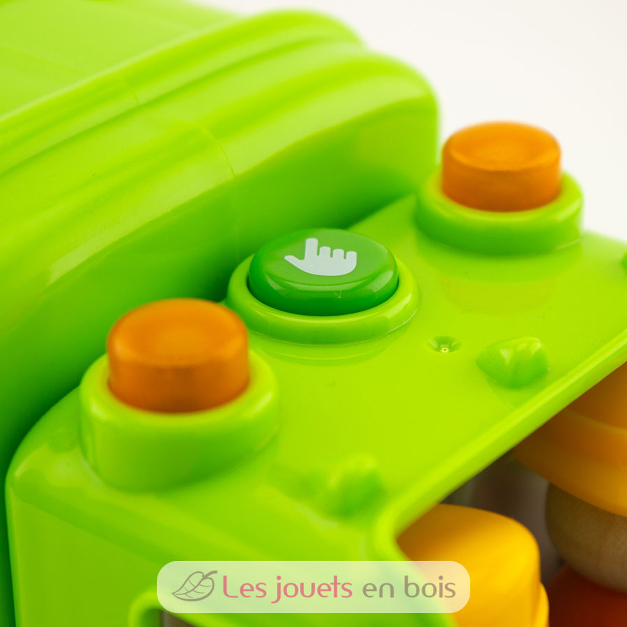 Durch Drücken der Taste auf dem Dach des Fahrzeugs kann das Kind Soundeffekte (Motorgeräusche und Musik) und Lichteffekte (Einschalten der Blinklichter) aktivieren und so für ein immersives Spielerlebnis sorgen. Mit der Kurbel können Sie den Mülleimer in den Mülleimer kippen, der sich öffnet und entleert, sodass das Ganze noch realistischer wirkt.