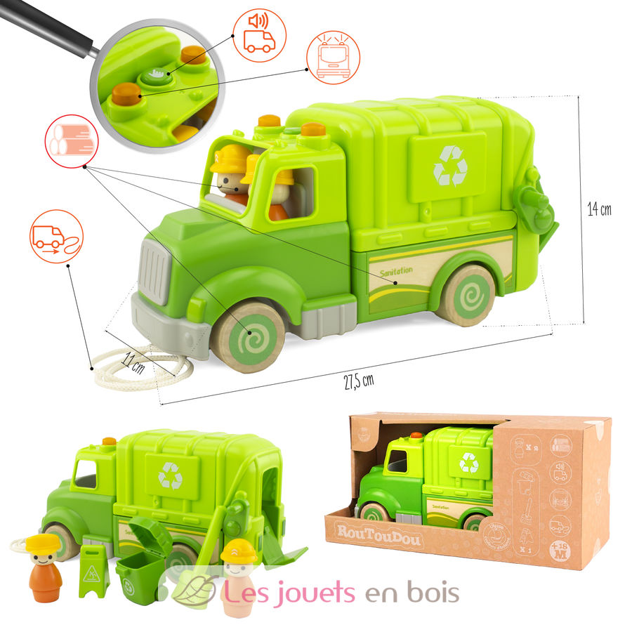 Dieser 27,5 cm große Müllwagen aus Holz und Kunststoff eignet sich perfekt für Kleinkinder ab 18 Monaten und ist ideal für stundenlanges fantasievolles Spielen.