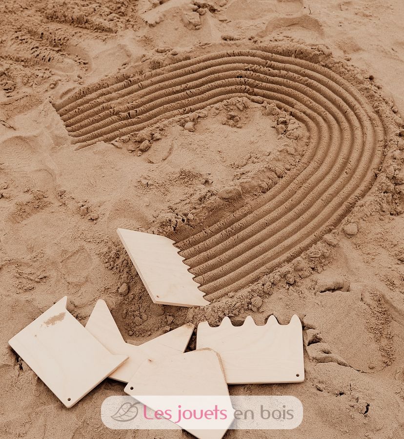 Diese 5 Kämme für Sand sind aus Birkenholz und haben eine ideale Größe, damit kleine Hände sie gut halten können.