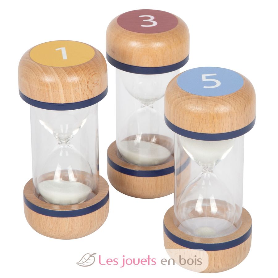 Das Sanduhren-Set aus robustem Buchenholz (1, 3 und 5 Minuten) ist ein toller Helfer für Kindergarten-, Grund- und Vorschulkinder, um die Zeit „sichtbar“ zu machen.