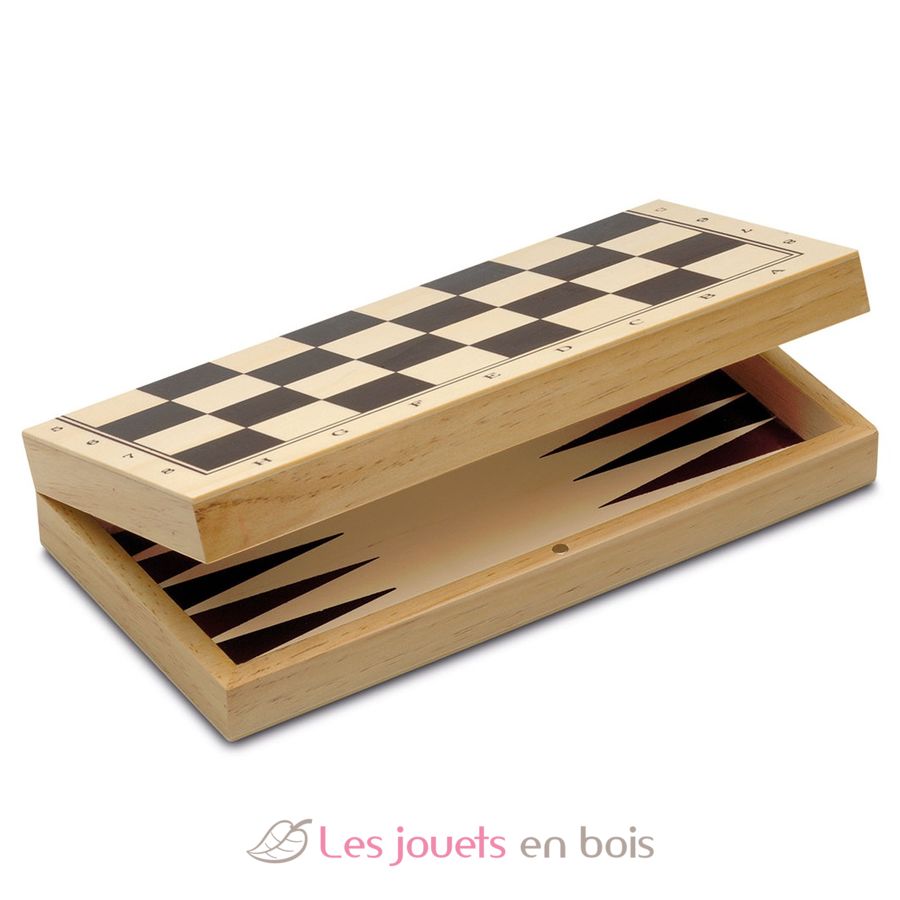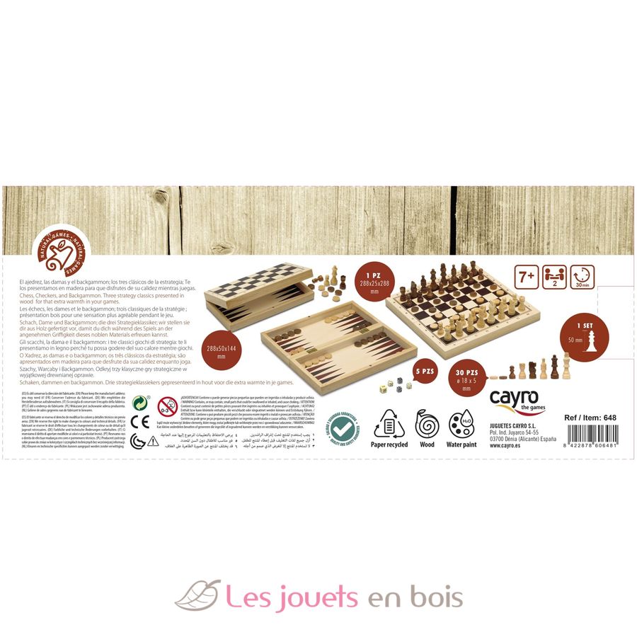 Schach, Dame und Backgammon, ein hölzernes Brettspiel von Cayro.