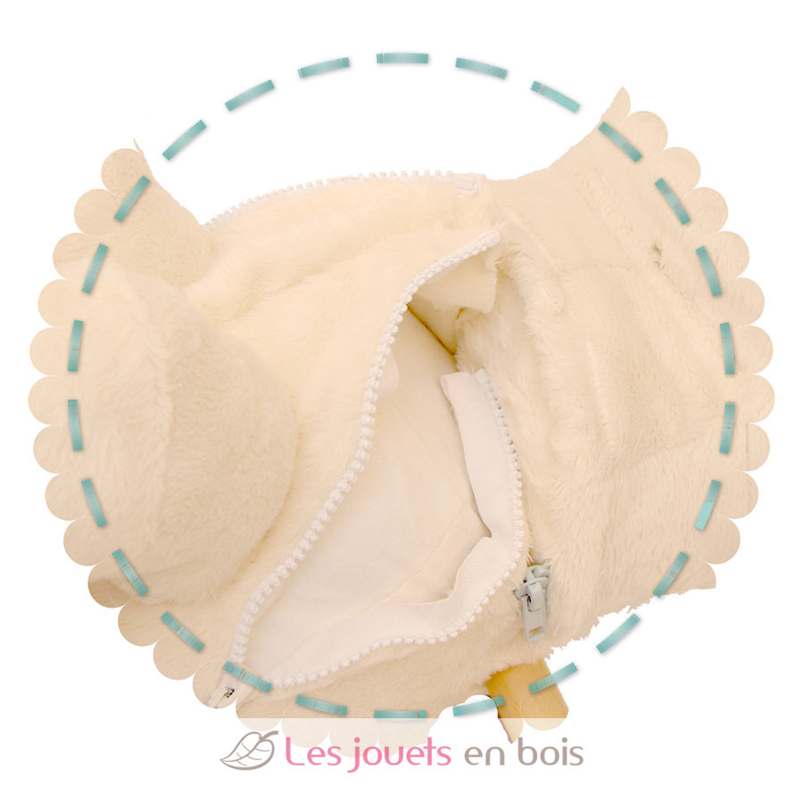 Die Holzgriffe sorgen für einen guten Halt. Der weiche Stoff lässt sich per Reißverschluss komplett abnehmen und von Hand waschen.