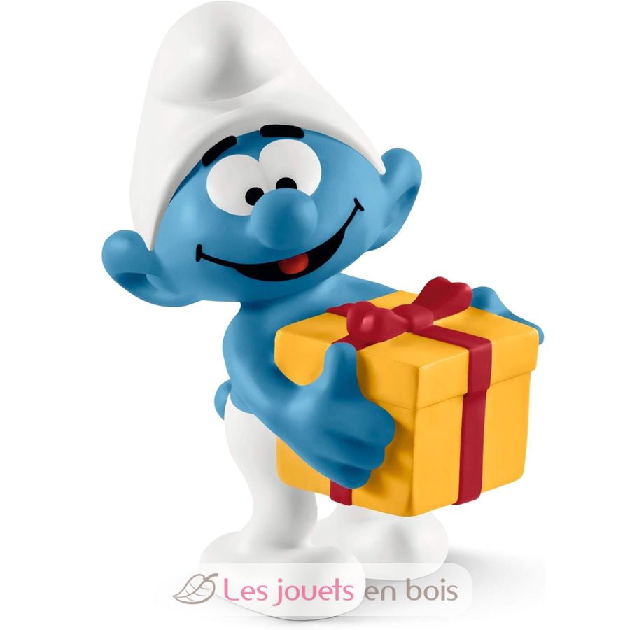 Schlumpf mit Geschenk, eine hübsche Figur von Schleich gemacht. Artikelnummer 20816