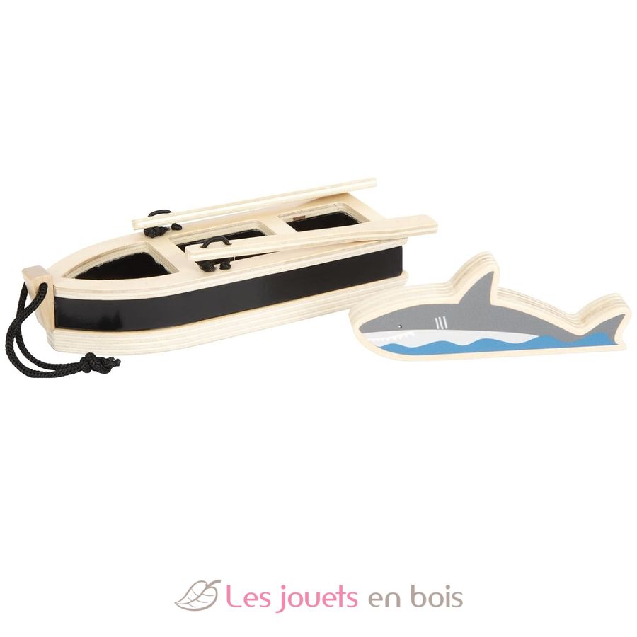 Das umfangreiche Spielset umfasst neben dem geräumigen Zweimaster auch ein Beiboot zum Rudern für zwei Biegepuppen, einen Hai, einen Papagei, eine Schatzkiste, eine Kanone sowie zwei Fässer, eine Planke und natürlich eine Piratenflagge. Wie bei einem echten Segelschiff lassen sich alle Segel an Seilen hissen und bergen. Für die Extraportion Spielspaß sorgt die Kanone, die ihre drei Kanonenkugeln aus Filz durch die Luft fliegen lässt!