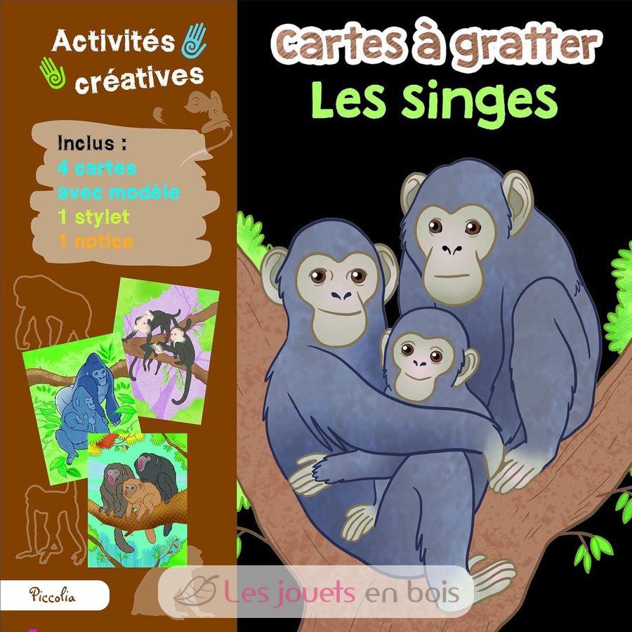 In diesem Kreativ-Set erwarten euch 4 Rubbelkarten mit Modell, 1 Stylus und 1 Anleitung. Das Ganze ist sehr farbenfroh gestaltet und enthält Illustrationen unserer Primatenfreunde!