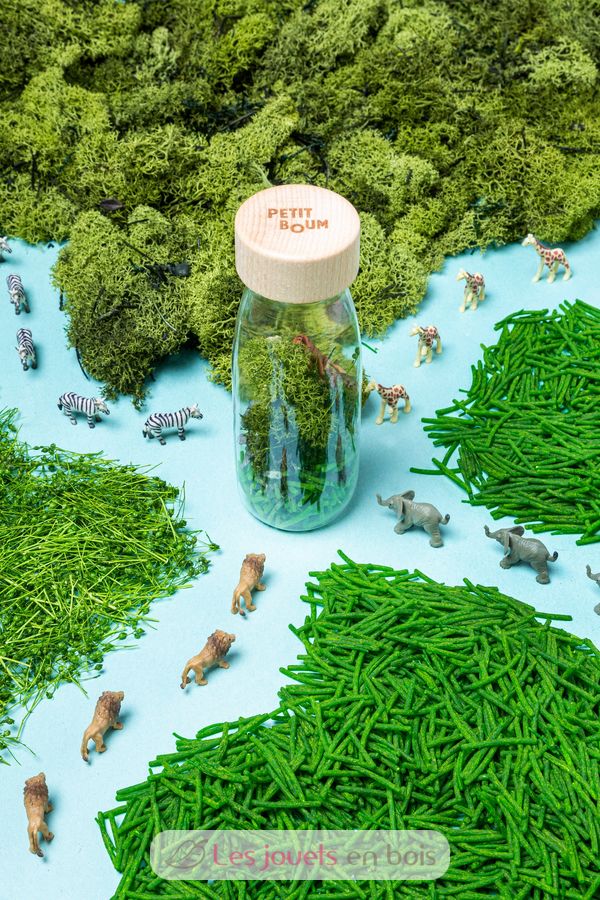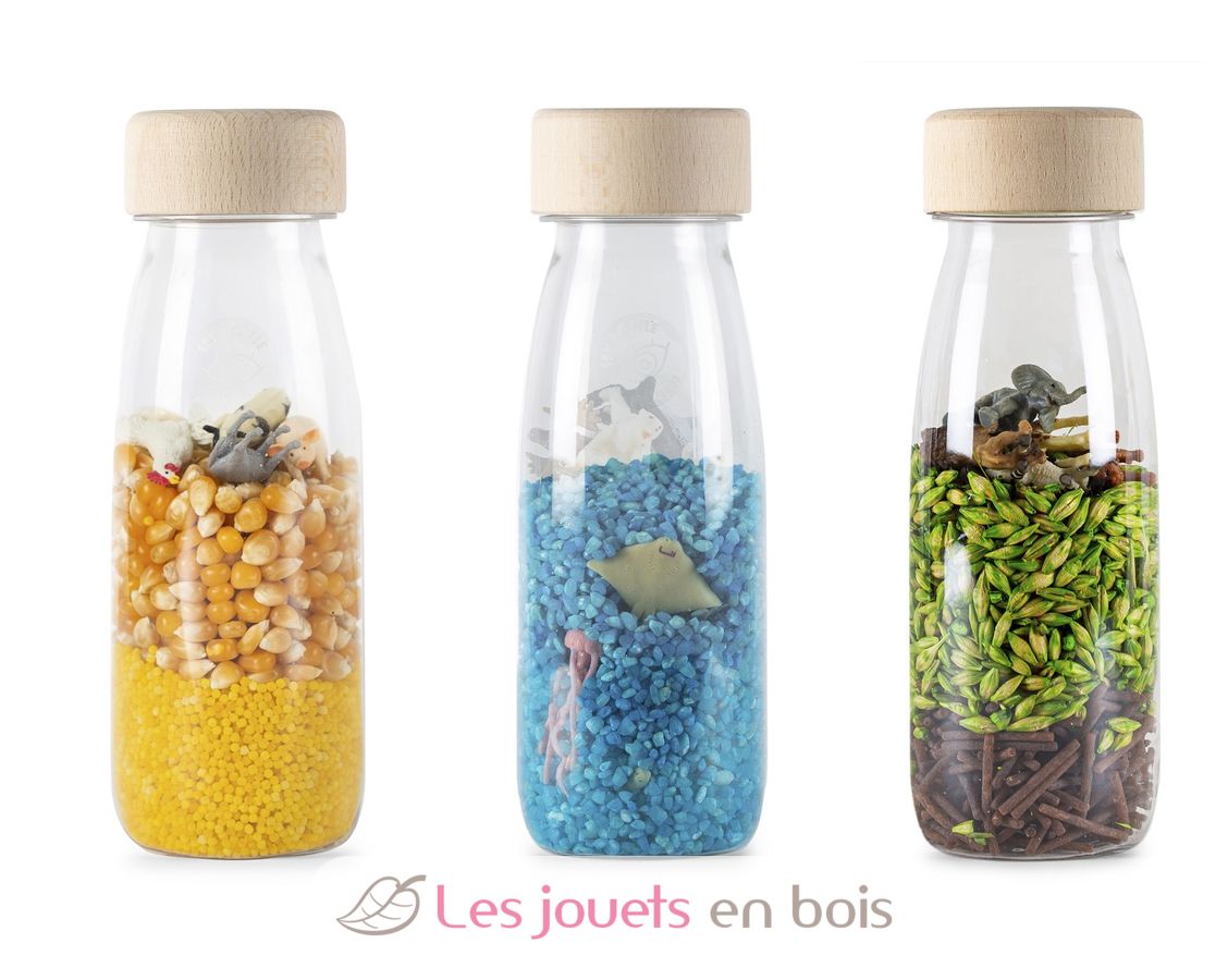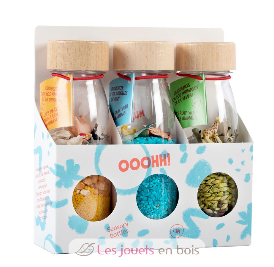 Entdecken Sie die Packung mit 3 Natur-Sensorflaschen der Marke Petit Boum: 1 Spy Jungle Sensorflasche, 1 Spy Sea Sensorflasche und 1 Spy Farm Sensorflasche.
