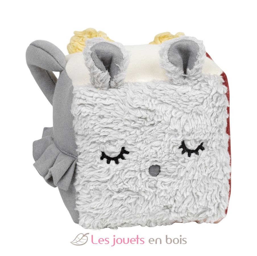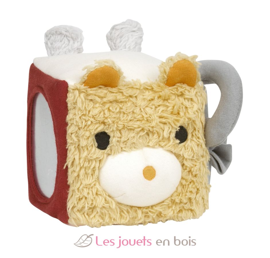 Material: Stoffe aus 100% zertifizierter Biobaumwolle. Umweltfreundliche, schadstofffreie Färbung. Die Füllung besteht zu 100% aus Maisfasern. Plastikspiegel und Rassel.