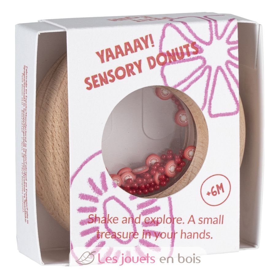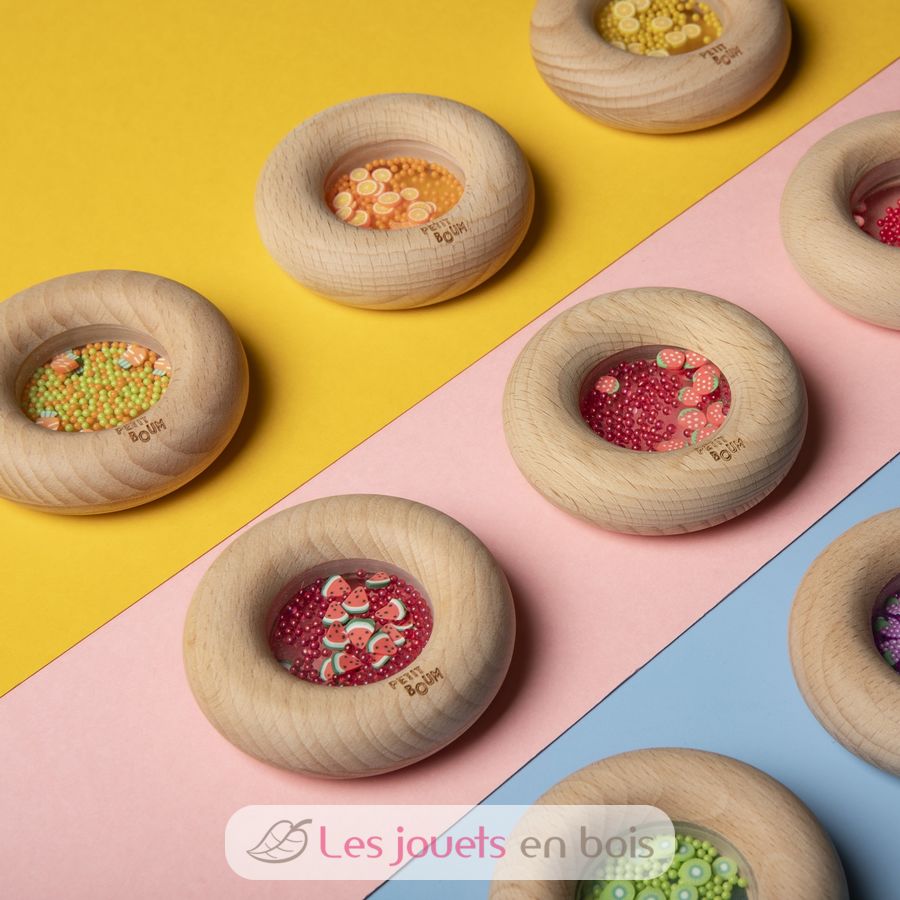 Entdecken Sie die sensorischen Donuts von Petit Boum: farbenfrohe und köstliche Rasseln mit einem lustigen und attraktiven Design.