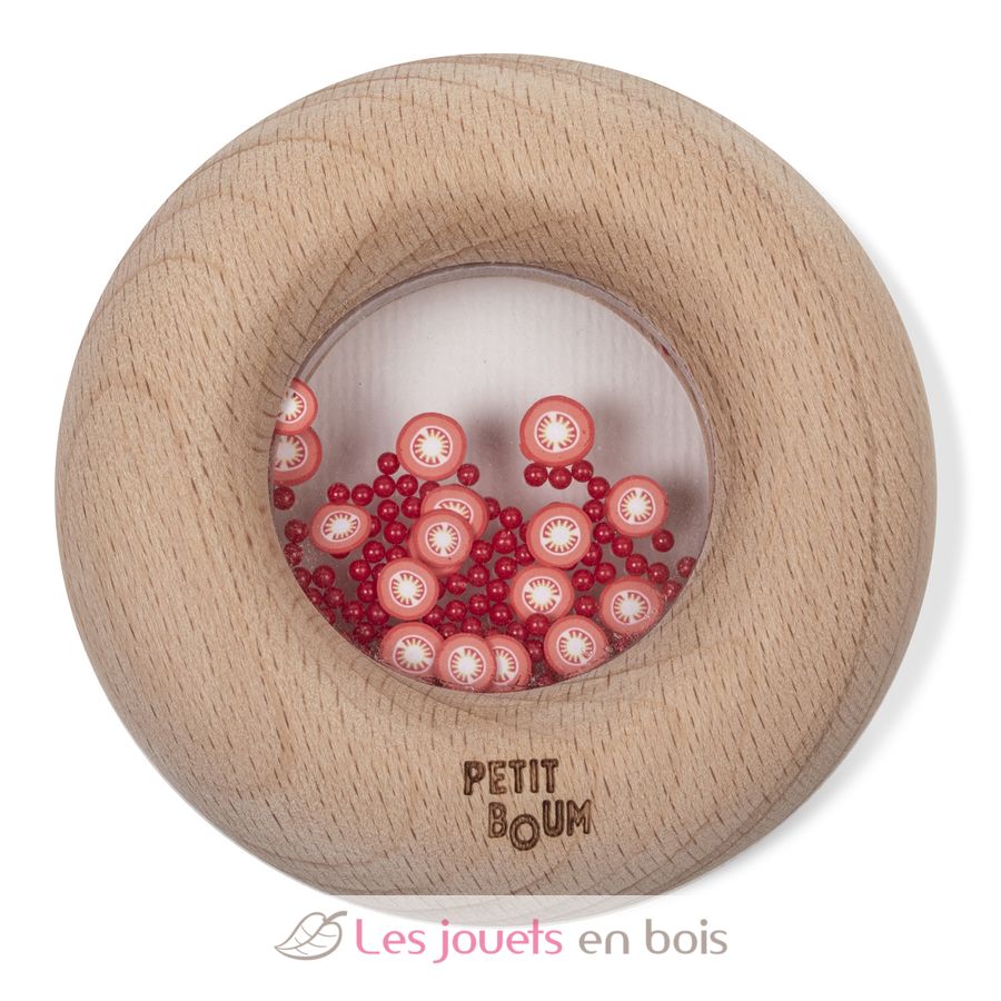 Dieses sensorische Spielzeug wird die Kleinen ab 6 Monaten begeistern. Diese glatte Holzrassel in Donutform ist perfekt für kleine Hände und lässt sich bequem greifen. Im Inneren kann das Kind leckere Obst- oder Gemüseformen erkennen, die beim Schütteln einen unwiderstehlichen sensorischen Klang freisetzen.