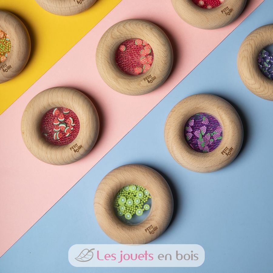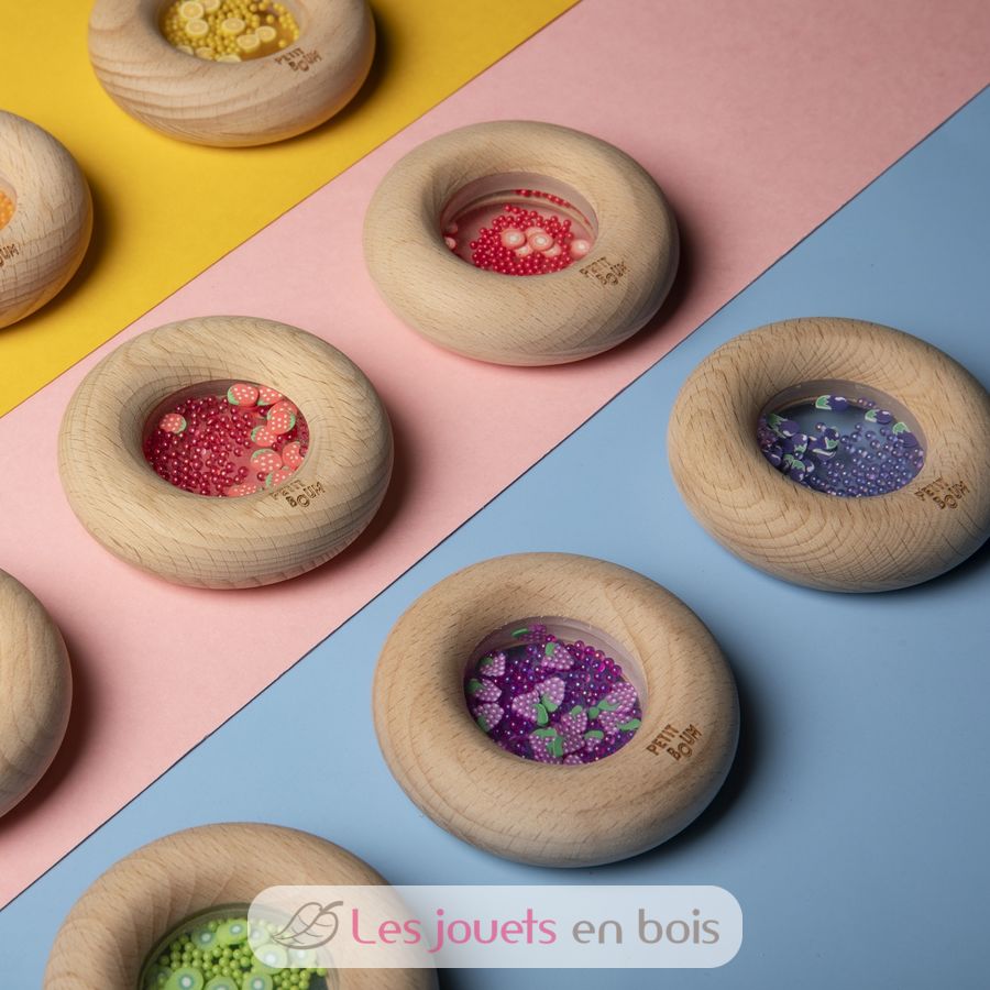 Entdecken Sie die sensorischen Donuts von Petit Boum: farbenfrohe und köstliche Rasseln mit einem lustigen und attraktiven Design.