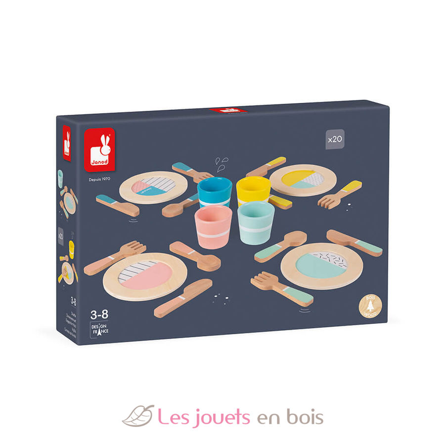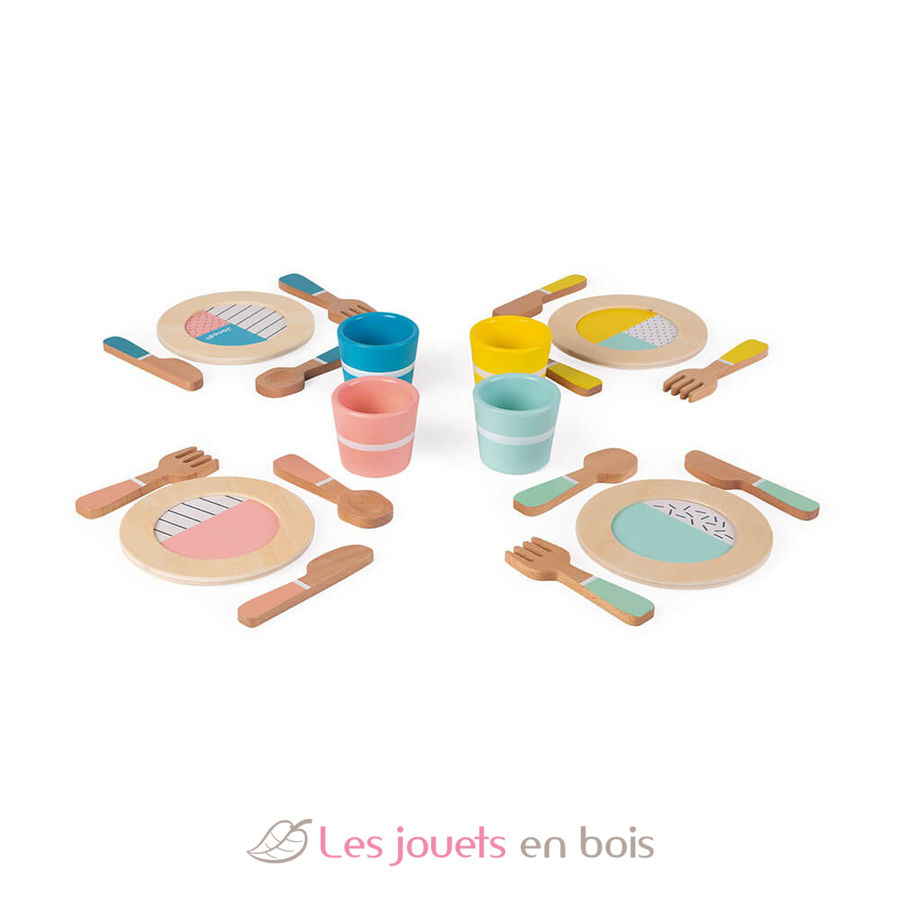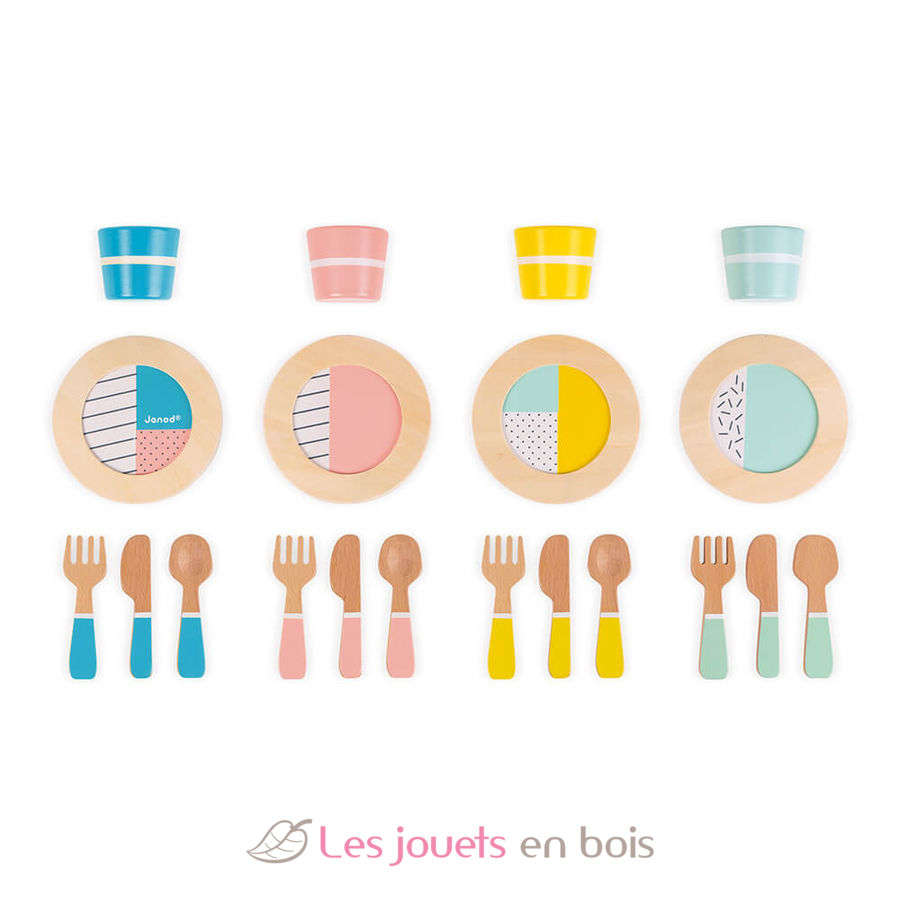 Service aus Holz, ein Spielzeug der Marke Janod. Referenz J06600.