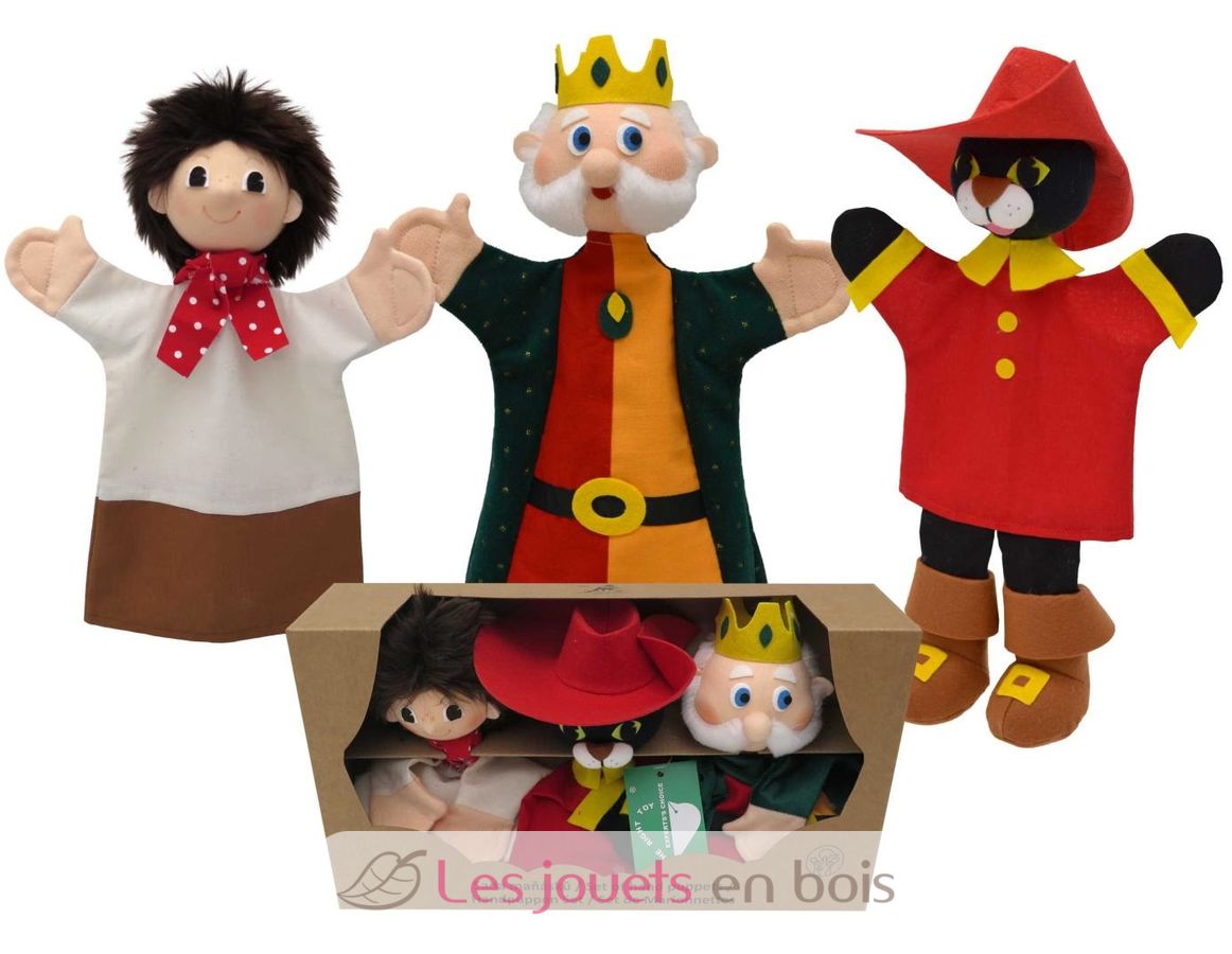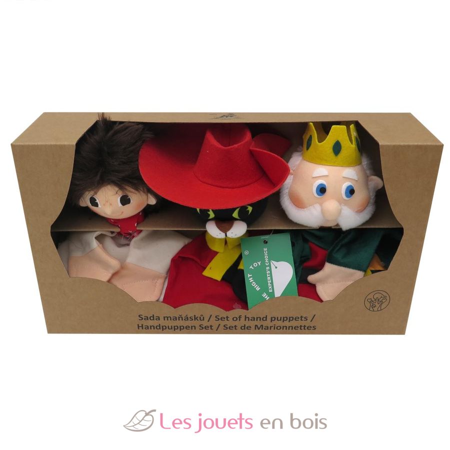 Set mit 3 Handpuppen zum Thema Der gestiefelte Kater.