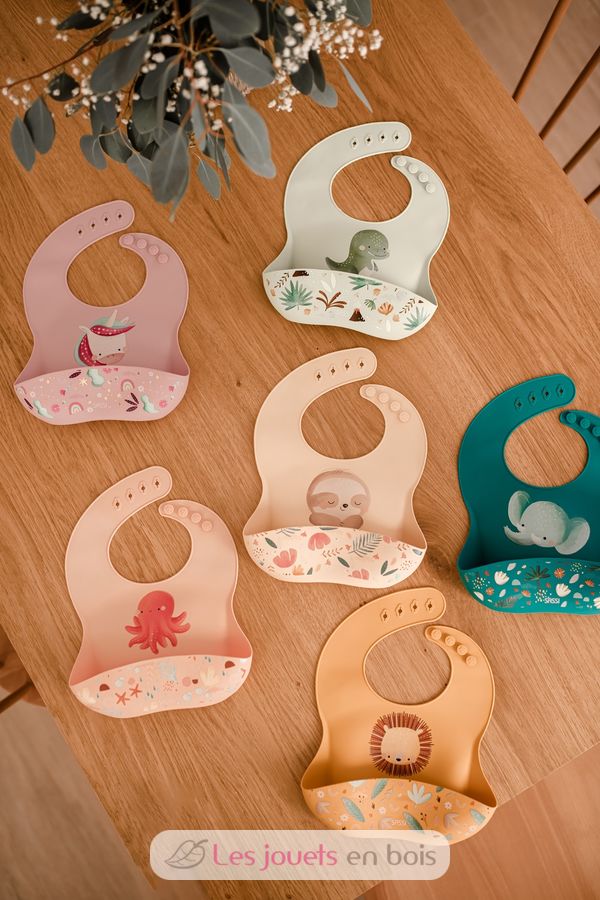 Entdecken Sie unsere bezaubernden Silikon-Lätzchen, streng nach dem LFGB-Standard konform und mit reizenden Charakteren wie Füchsen und Einhörnern verziert. Diese Lätzchen bieten nicht nur wirksamen Schutz vor Flecken und Verschüttungen während der Mahlzeiten Ihres Babys, sondern verleihen auch jedem Essen eine Prise Fantasie und Fröhlichkeit. Hergestellt aus hochwertigen Materialien, sind sie sanft zur Haut Ihres Babys und einfach zu reinigen, was eine praktische und hygienische Verwendung im Alltag gewährleistet. Entscheiden Sie sich für Sicherheit und Stil mit unseren Silikon-Lätzchen und verwandeln Sie jede Mahlzeit in eine freudige und sorgenfreie Erfahrung für Ihren kleinen Schatz.