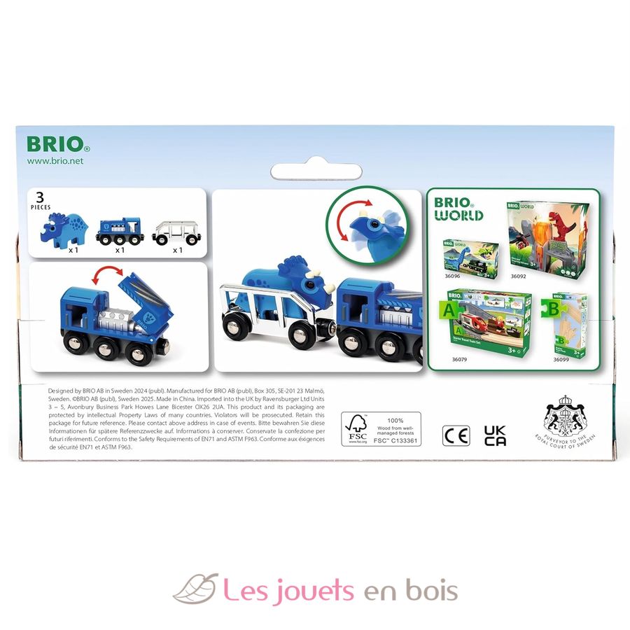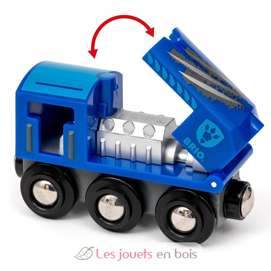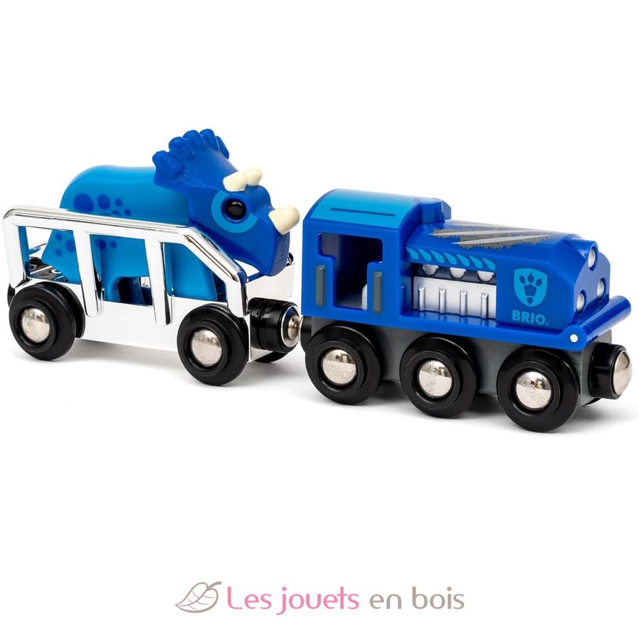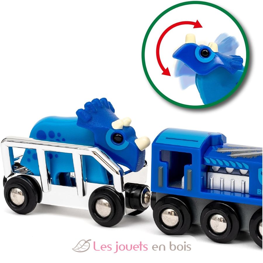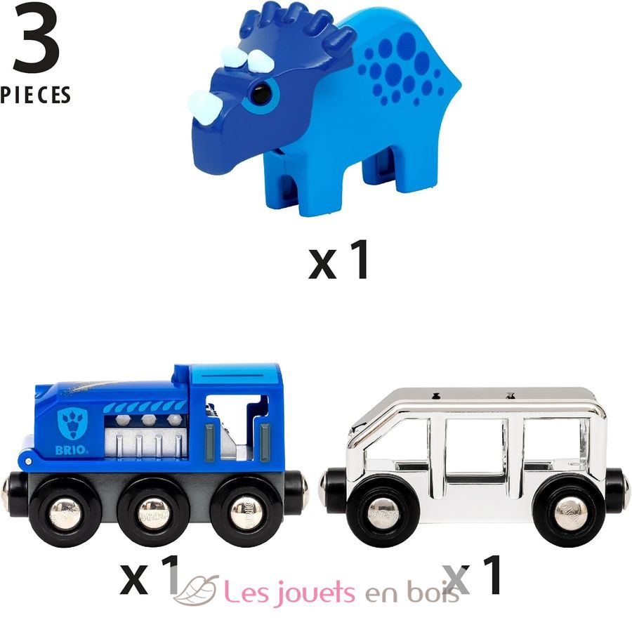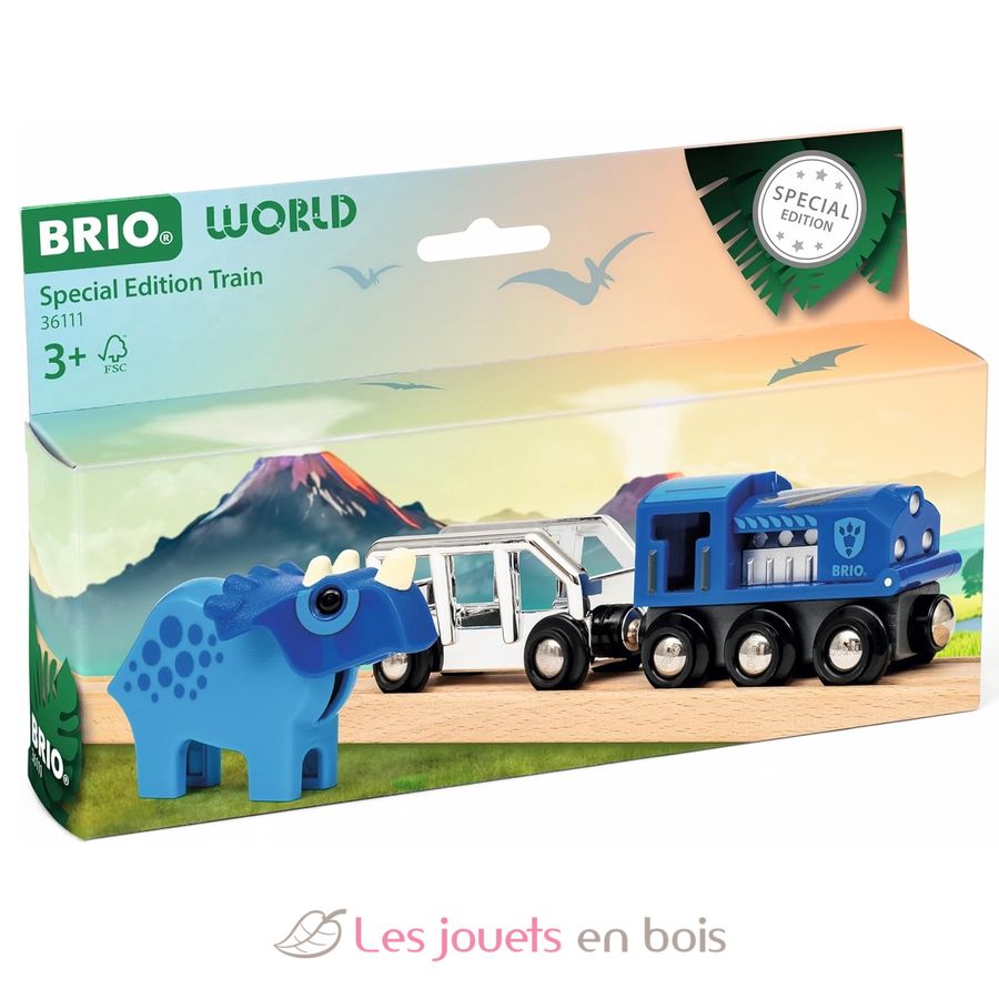 Der Special Edition Train ist ideal zur Vervollständigung eines Brio World Eisenbahnsets. Dieser Zug mit Dinosauriermotiven hat eine silberne und blaue Lackierung und eine blaue Triceratops-Figur. Öffnen Sie die Motorhaube des Zuges, um den Motor freizulegen. Nach einigen Anpassungen beladen Sie den Wagen mit dem Dinosaurier und setzen Ihre Reise fort. Dieser Zug in limitierter Auflage ist nur in diesem Jahr erhältlich. Verpassen Sie also nicht die Gelegenheit, ihn zu Ihrem Eisenbahnset hinzuzufügen.