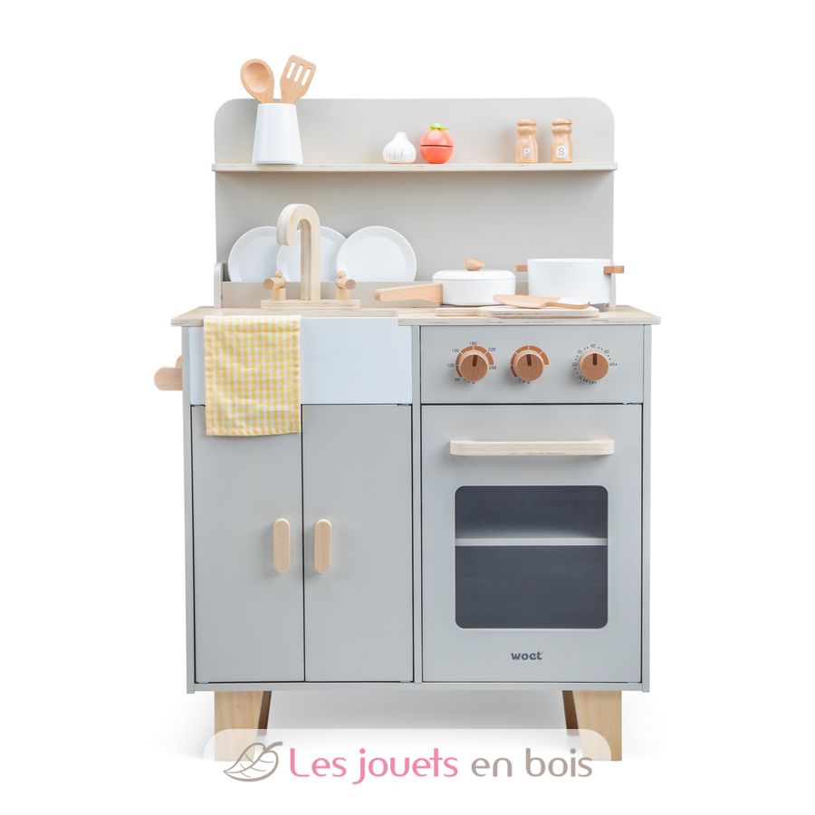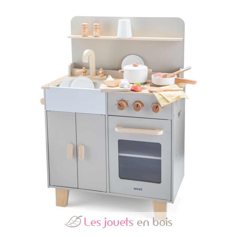 Spielküche graubeige, eine Holzküche für Kinder der Marke New Classic Toys. Referenz 11080.