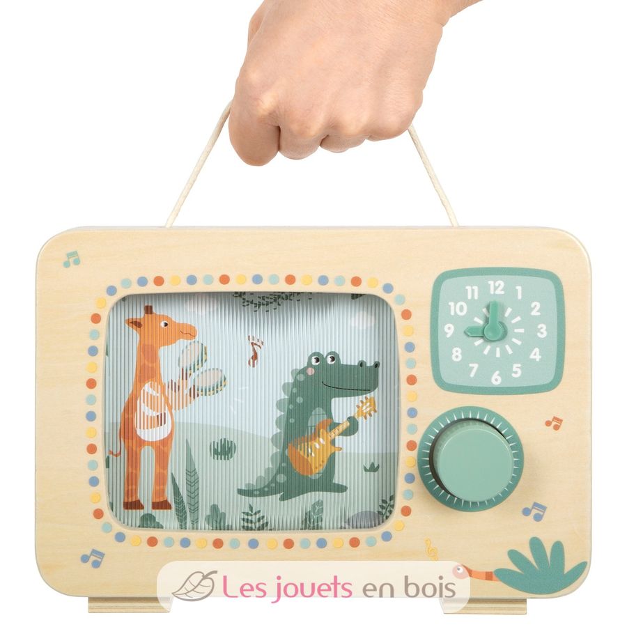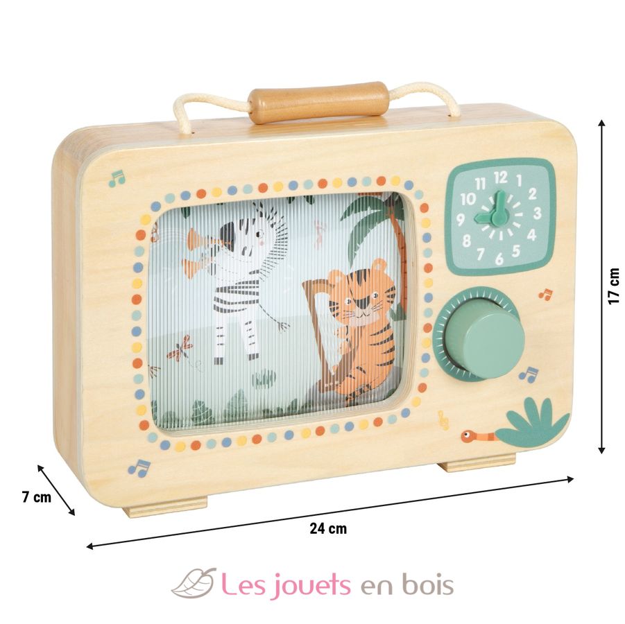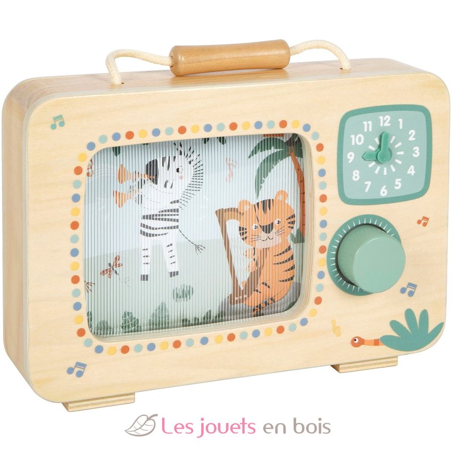 Mit dieser großen Spieluhr im TV-Format aus FSC-zertifiziertem Holz erleben Kinder, wie das Orchester aus fröhlich musizierenden Safari-Tieren zum Leben erwacht.