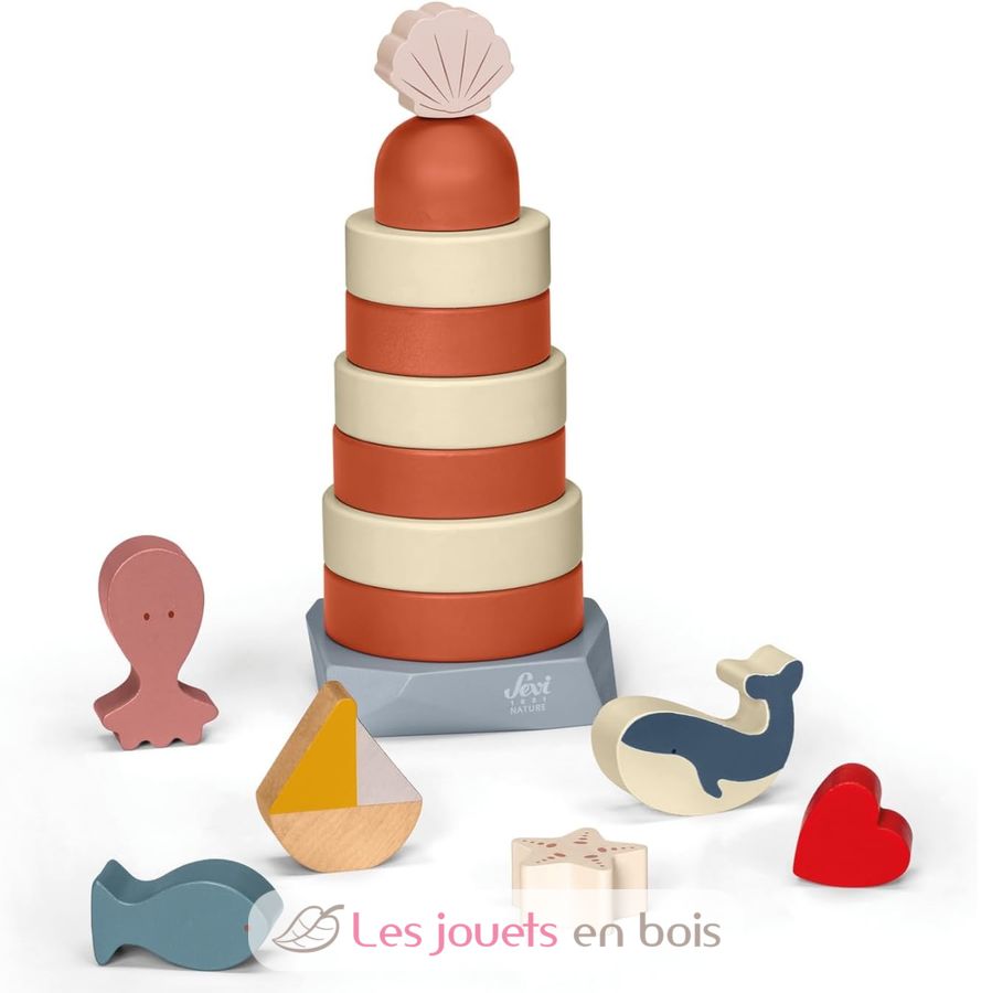 Der stapelbare Leuchtturm besteht aus fünf bezaubernden Meeresfiguren und einem roten Herz. Diese unsichtbaren Säulen machen ihn selbsttragend und sorgen für endlose Abenteuer.