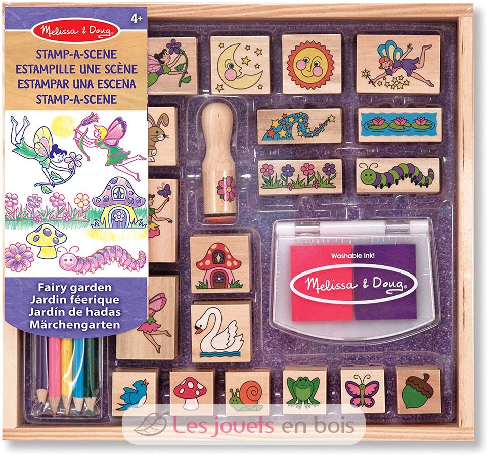 Stempel zum Thema Märchen Gärten. Wählen Sie aus dieser Menge von Stempeln in detaillierte Holz, Hunderte von schönen Szenen und mehr zu schaffen! Das Set beinhaltet Stempelkissen und passt problemlos in eine Holzkiste. Waschbar Tinte! ;-) Für Kinder ab 3 Jahren. Ein Spielzeug des weltbekannten amerikanischen Marke, Melissa und Doug. Ref: 12424