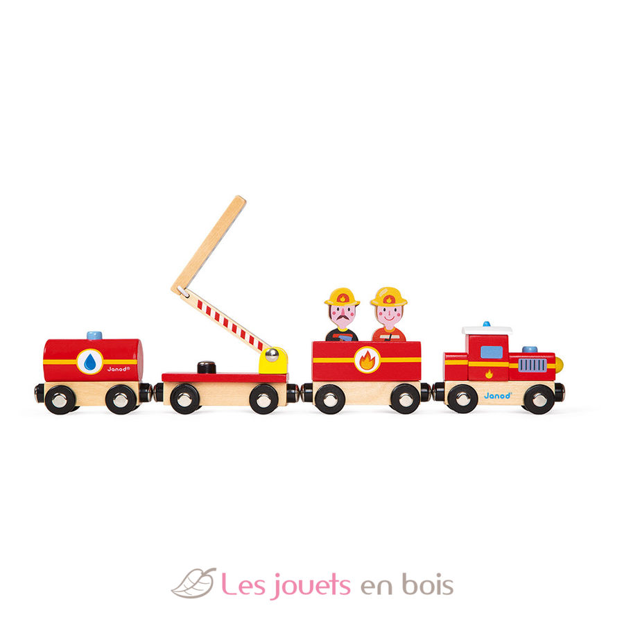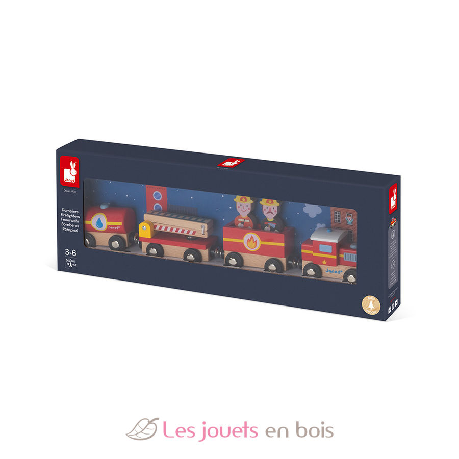 Story Zug Feuerwehr mit Figuren, ein Holzzug der Marke Janod. Referenz J08590.