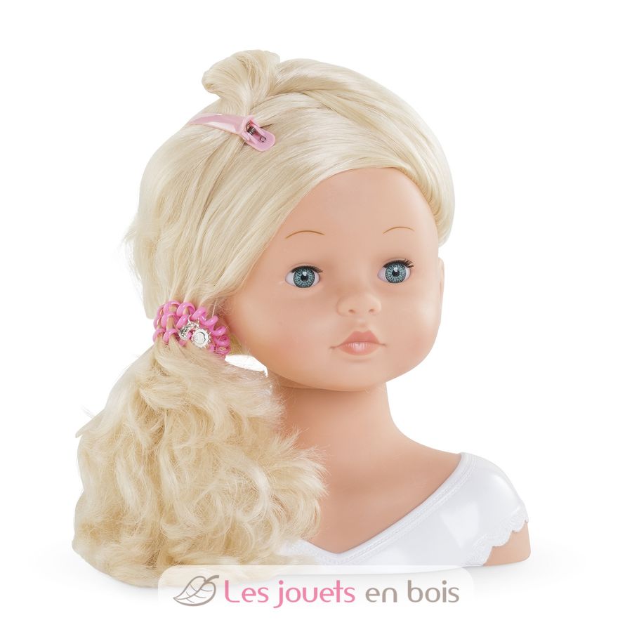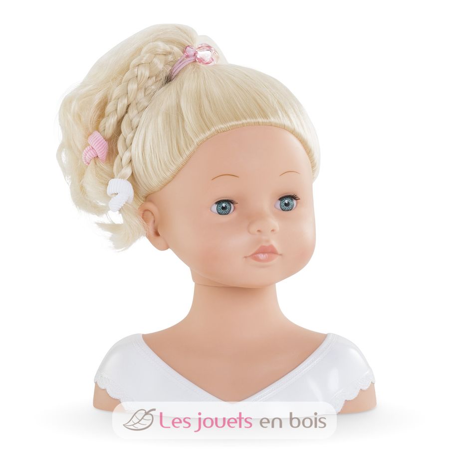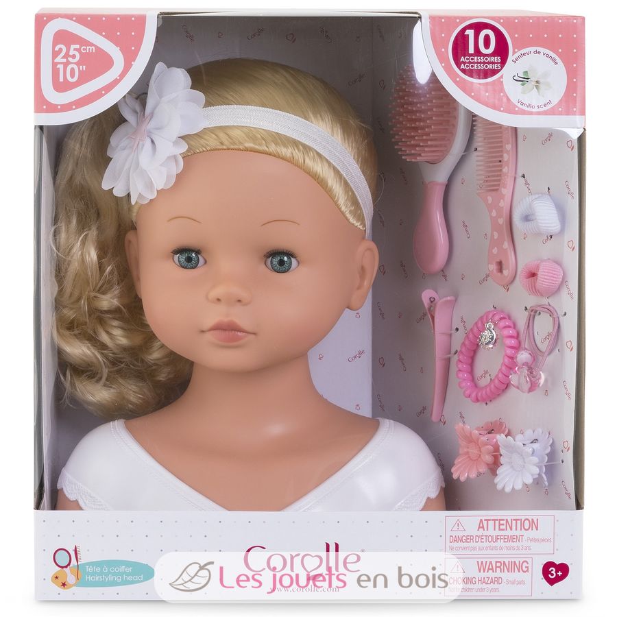 Dieser Stylingkopf besteht aus Soft-Touch-Vinyl mit einem zarten Vanilleduft. Die Augen sind fest und mit Wimpern versehen.