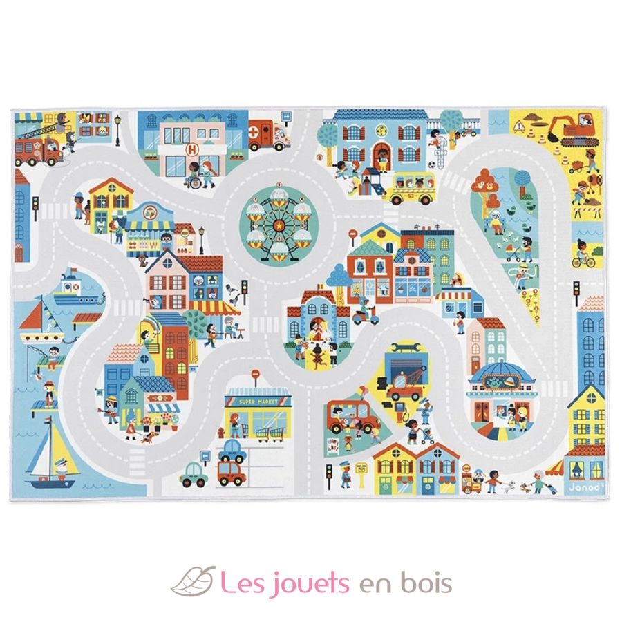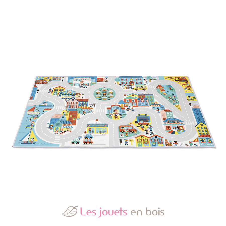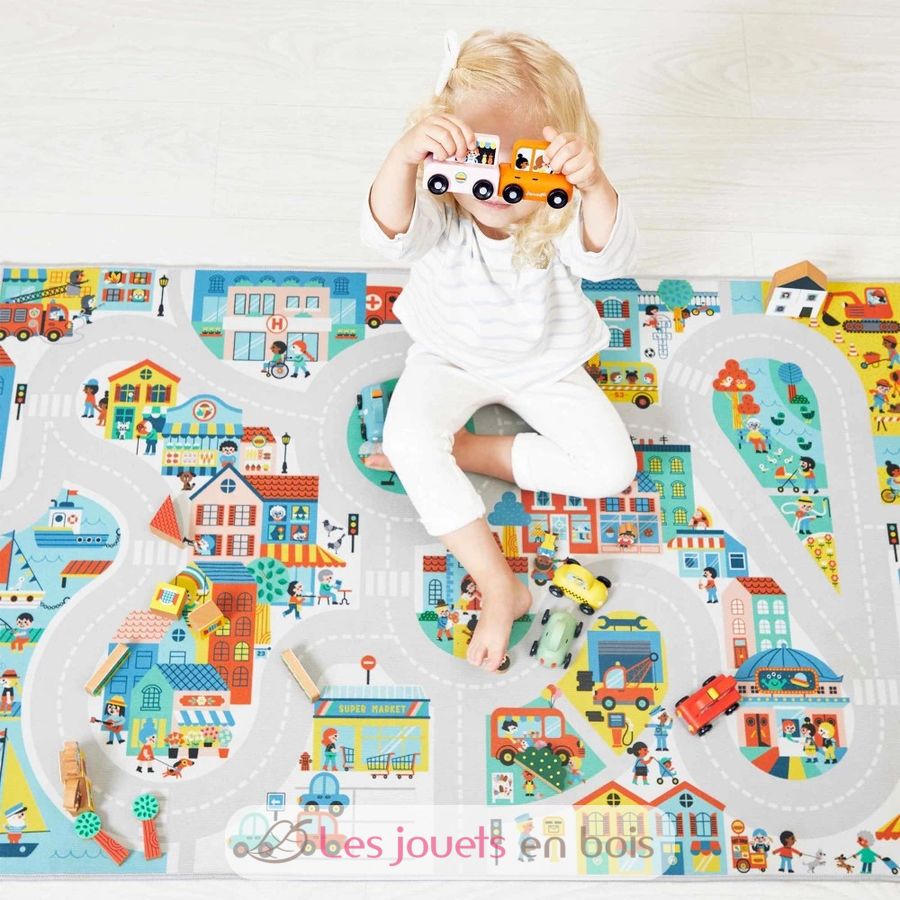 Teppich mit Rennstrecke Stadt, eine Spielmatte für Kinderzimmer aus der Cross Roads-Reihe von Janod.
