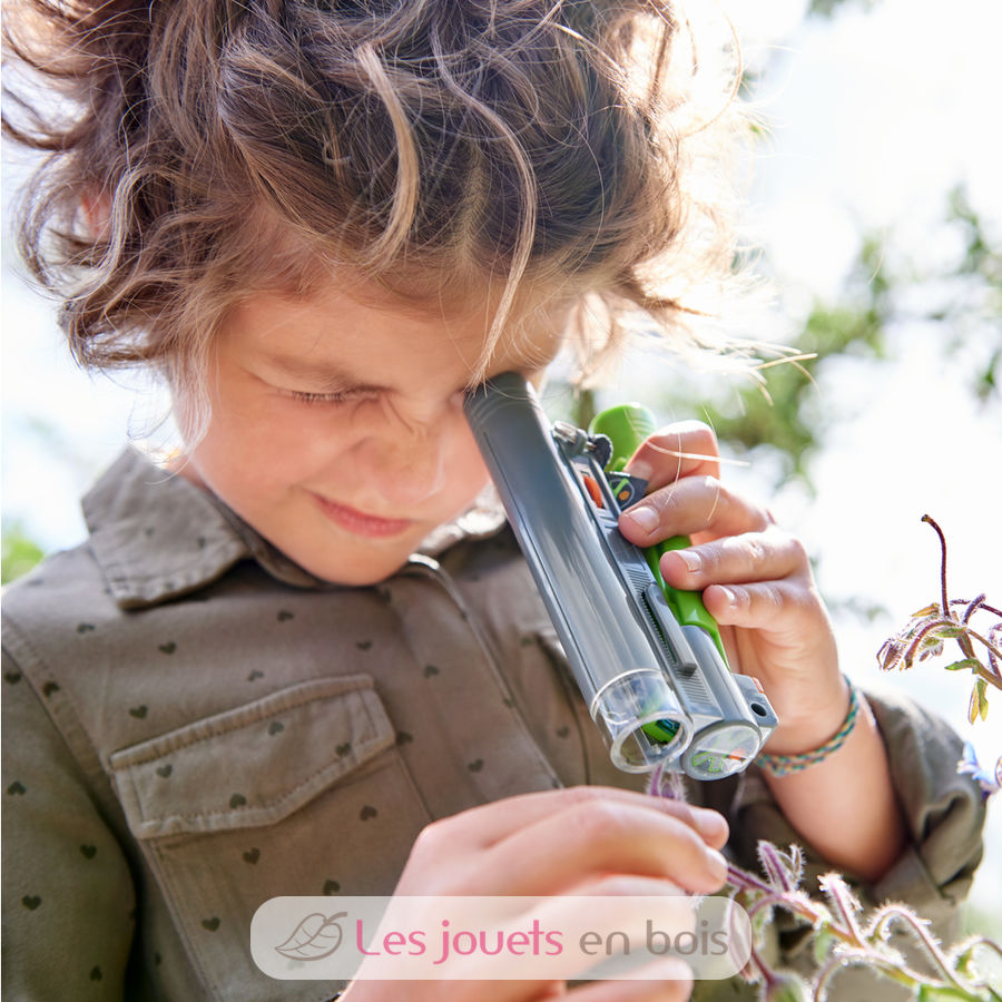 Das Terra Kids Mikroskop von HABA ist ein handliches Beobachtungs- und Vergrößerungsgerät. Mit ihm können kleine Forscher und Entdecker ihre Umwelt ganz genau unter die Lupe nehmen. Ob Grashalm oder Blattadern – mit diesem optischen Hilfsmittel machen sie so einige „Geheimnisse“ der Natur sichtbar. Dank der praktischen Vergrößerungsfunktion lassen sich selbst Feinheiten erfassen und beobachten. So gewinnen kleine Naturforscher wertvolle Erkenntnisse. Dabei entwickeln sie einen selbstständigen und respektvollen Umgang mit der Natur und Verantwortungsbewusstsein für ihre Umwelt. Das Terra Kids Mikroskop von HABA ist daher ideal für jeden Streifzug durchs Grüne!