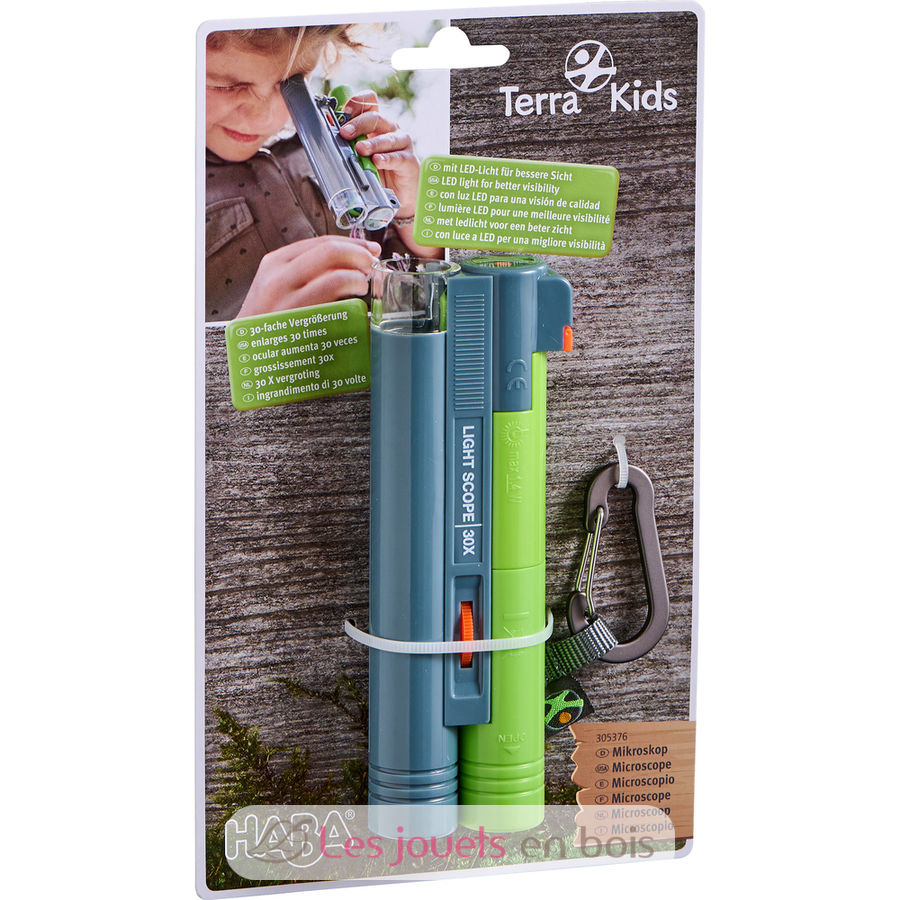 Das Terra Kids Mikroskop von HABA bietet eine bessere Sicht dank LED-Licht. Perfekt für unterwegs dank geringem Gewicht und praktischem Taschenformat. 14 cm großes Kunststoff-Mikroskop mit 30-facher Vergrößerung (Batterien nicht enthalten). Inklusive Karabiner zur Befestigung am Rucksack. Praktisches Geschenk für Naturforscher.