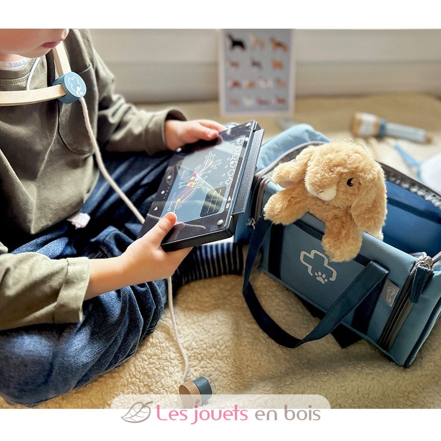 Kleiner Hase, große Verantwortung! Mit der liebevoll ausgestatteten Tierarzt-Tasche mit Plüschhase schlüpfen Kinder in die Rolle von Tierärzt:innen und kümmern sich fürsorglich um ihre Patienten.