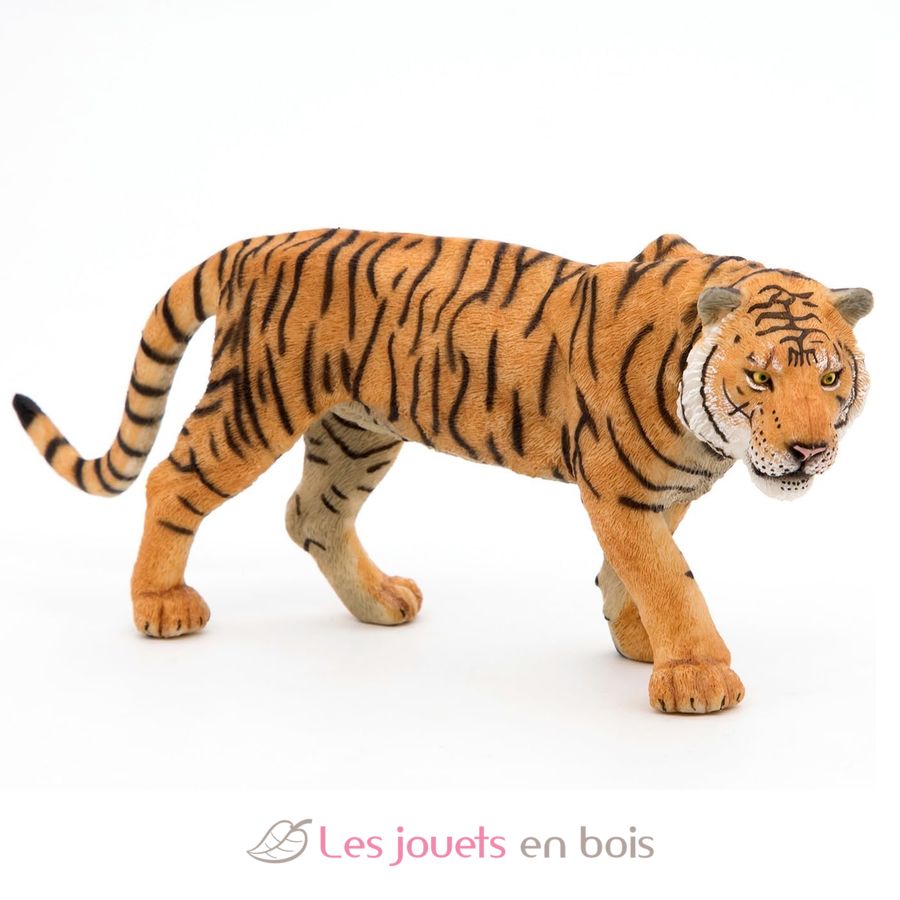 Ursprünglich aus Asien, dieses imposante Fleisch fressendes Säugetier ist die größte Raubkatze in der Welt. Es ist leicht erkennbar an ihren orangefarbenen Fell und schwarzen Streifen spezifisch für jeden einzelnen. Bei der Jagd, diese gewaltige Räuber ernährt sich hauptsächlich auf Rehe, Wildschweine, Büffel und sogar Krokodile. Ursprünglich aus Asien, ist der Tiger eine Art betrachtet bedroht und heute geschützt ist.Tigre, eine hübsche Figur auf das Thema der wilden Tiere, die sorgfältig von Hand bemalt und modelliert sehr realistisch. Papo Figuren werden in Kürze anhand einer Sammlung nach und nach erwacht und Entdeckung für Ihr Kind zu bereichern werden.