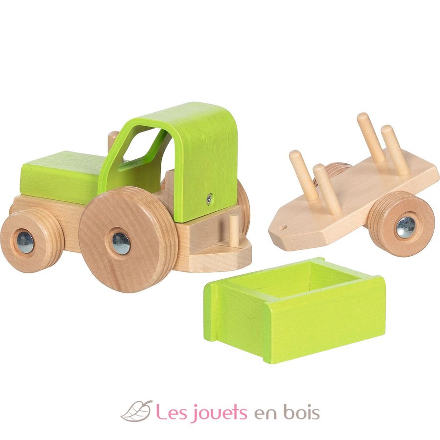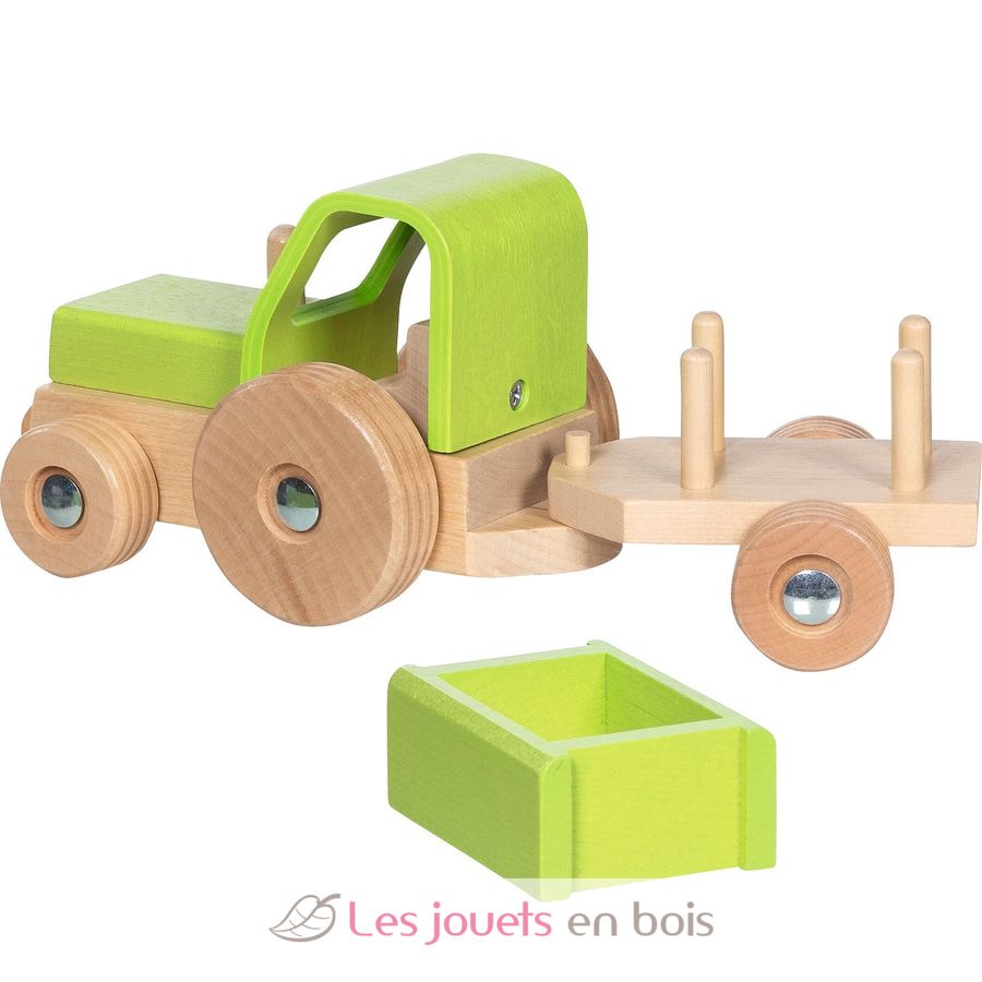 Proportionen, Formgebung und Funktionen dieses Fahrzeugs sind perfekt für kleine Hände. Dieser Holztraktor fördert die Feinmotorik und regt die Fantasie an.