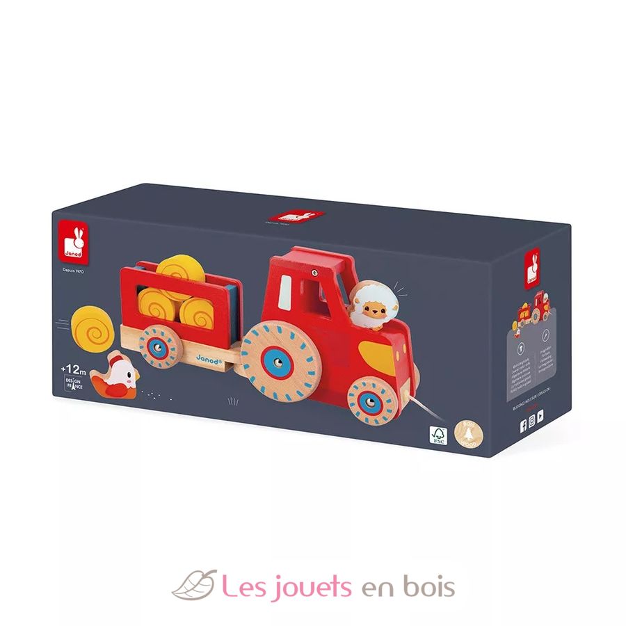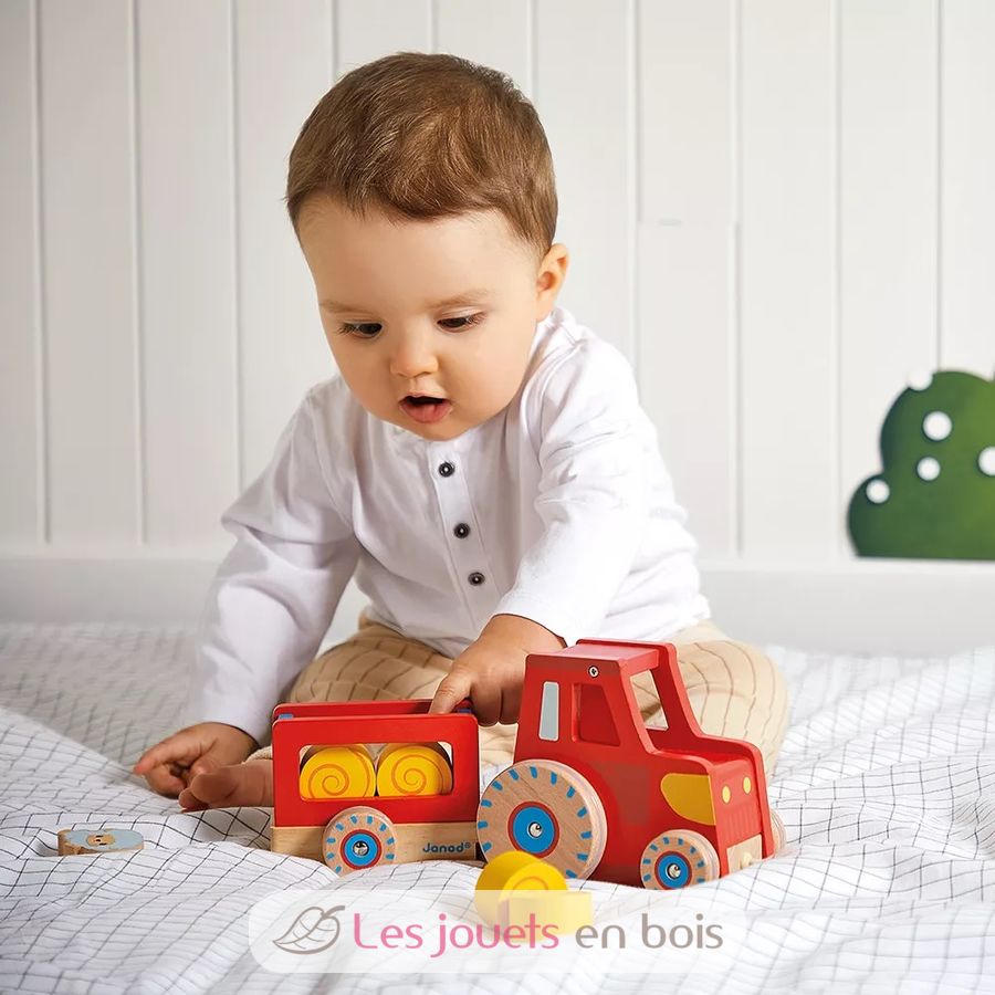 Traktor ziehen, ein Holzspielzeug von Janod.