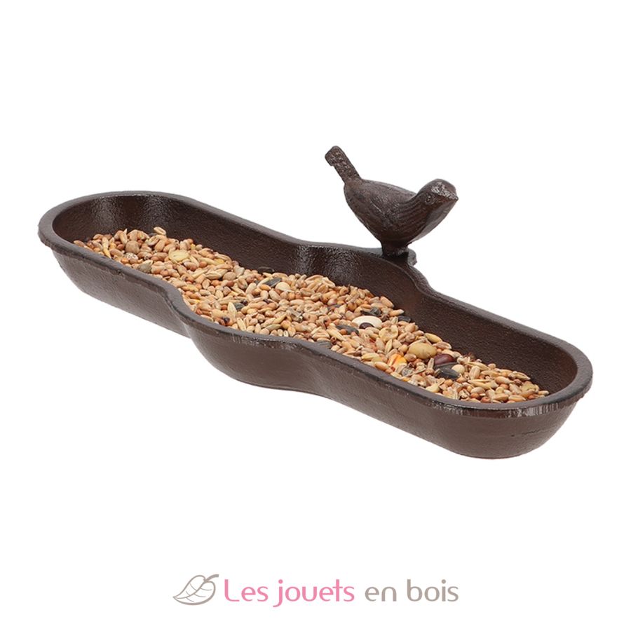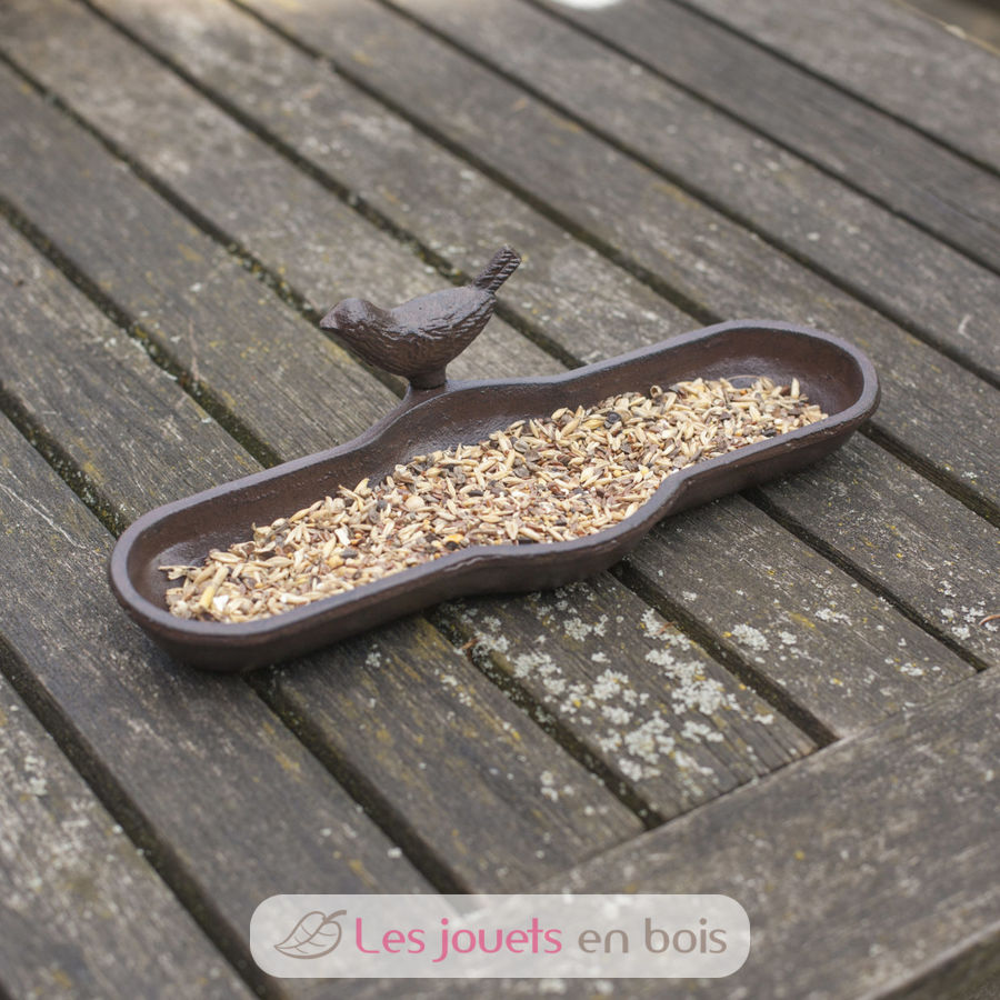Diese gusseiserne Schale kann sowohl mit Futter als auch mit Wasser gefüllt werden und bietet den Vögeln somit einen schönen Trink- oder Badeplatz. Ein Vogel hat sich bereits am Rand niedergelassen, es liegt also an den anderen Vögeln, diesem Beispiel schnell zu folgen.