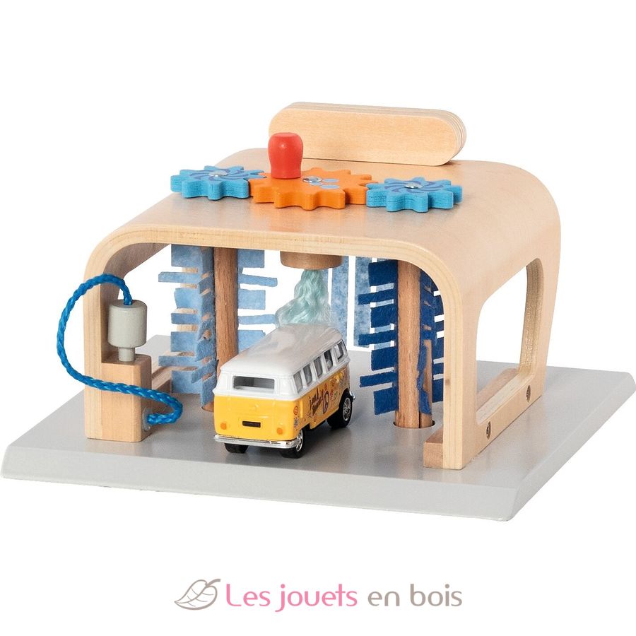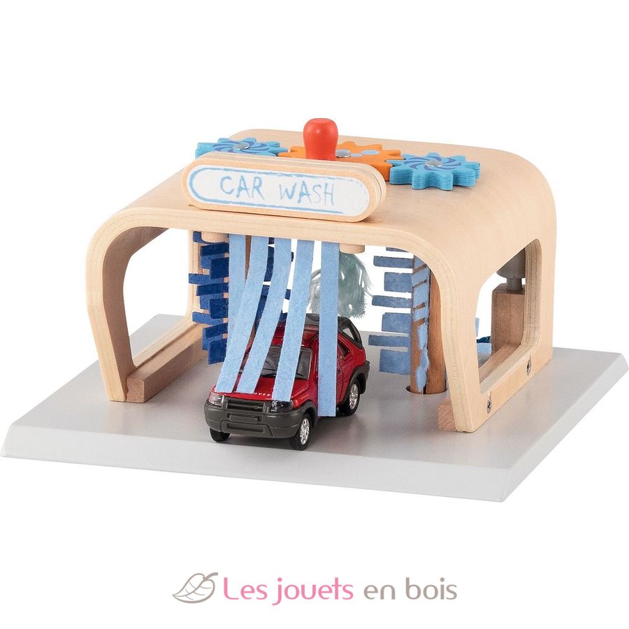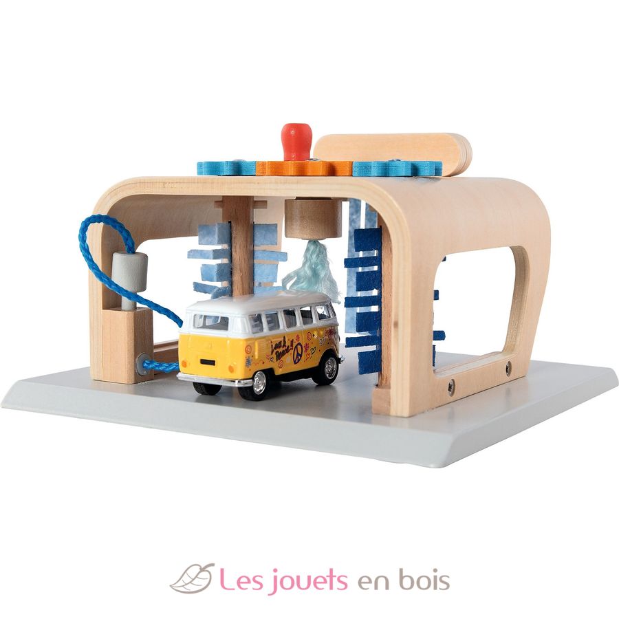 Erst gibt’s eine spritzige Vorwäsche mit der Hochdruckdüse, dann schrubben die rotierenden Seiten- & Dachbürsten und am Ende trocknen die kuschelweichen Textilstreifen dein geliebtes Spielzeugauto blitzblank.