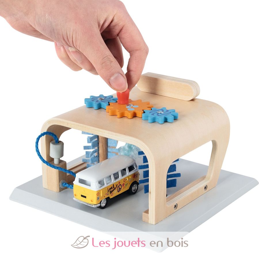 Das Beste: Dreh einfach die Zahnräder auf dem Dach, um die Bürsten in Bewegung zu setzen!