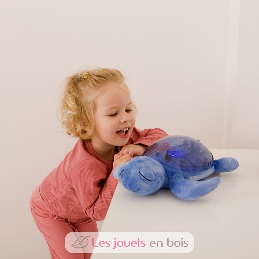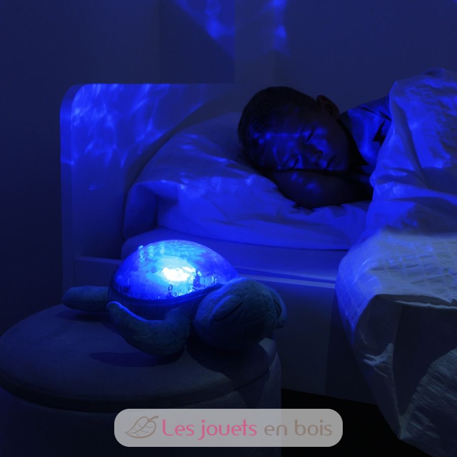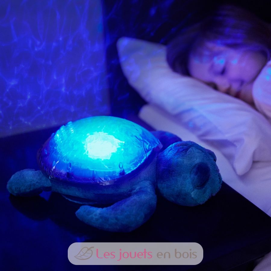 Dieses Tranquil Turtle-Nachtlicht beruhigt Babys und beruhigt Kinder, die Angst vor der Dunkelheit haben. Tagsüber ist es ein weicher Plüsch, nachts verwandelt es sich in ein Nachtlicht. Der Unterwasserlichteffekt ist dank der Projektion bewegter Wellen magisch. Melodien und weiße Geräusche beruhigen die Kleinen und entführen sie in das Land der Träume.