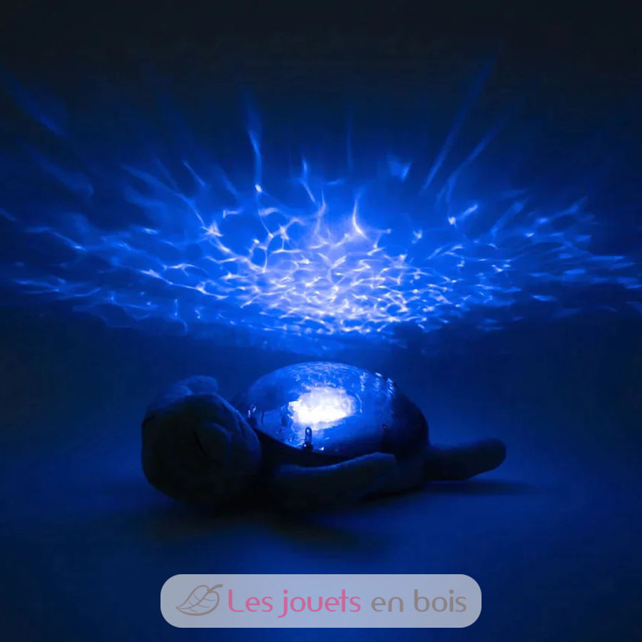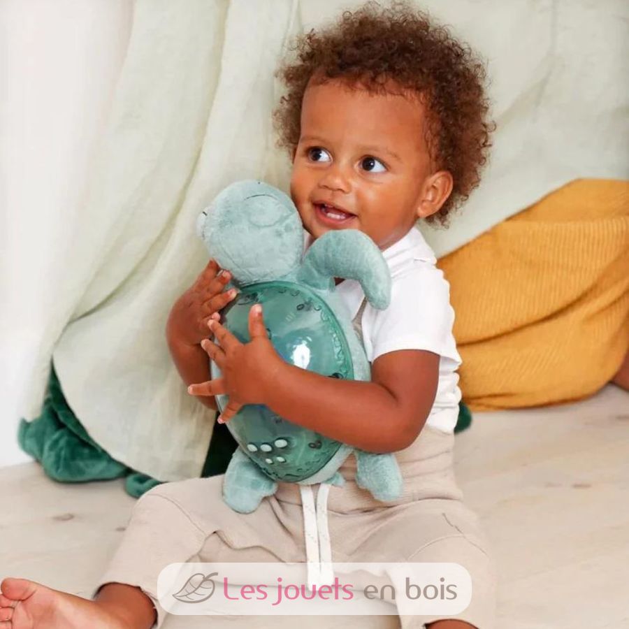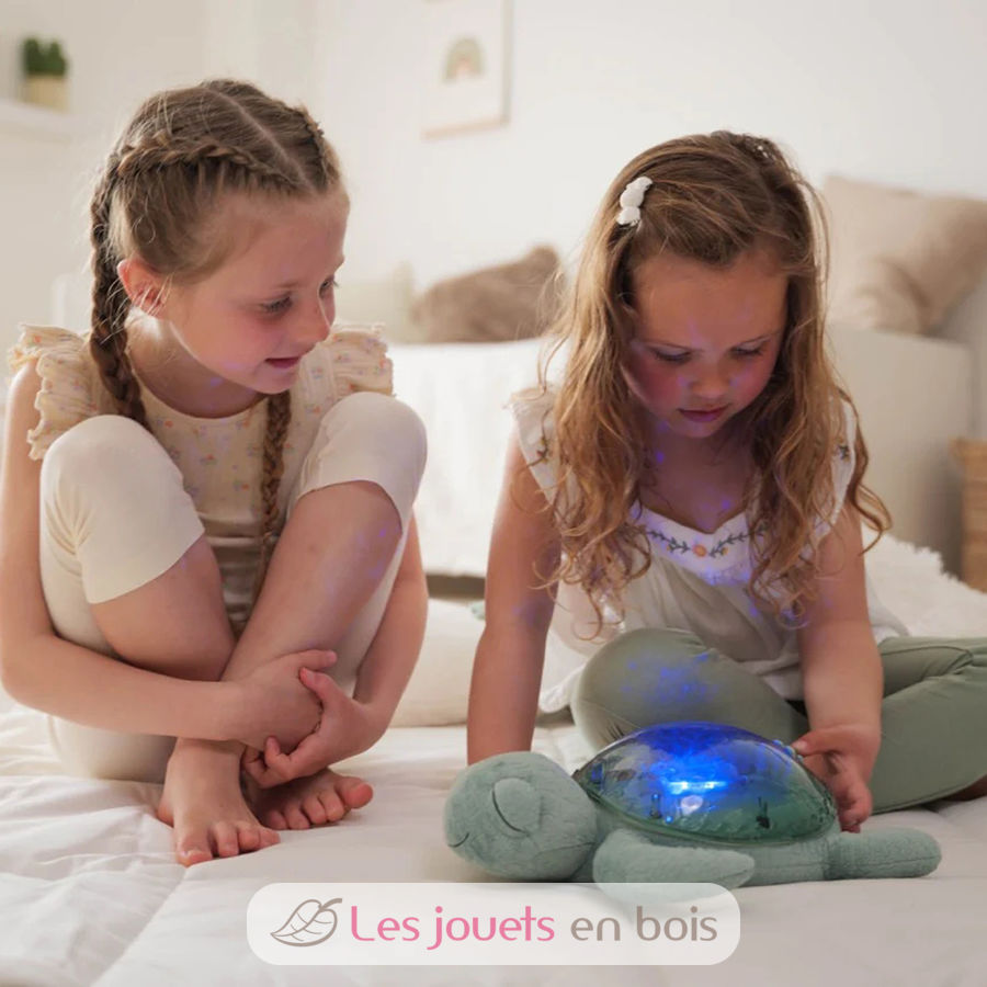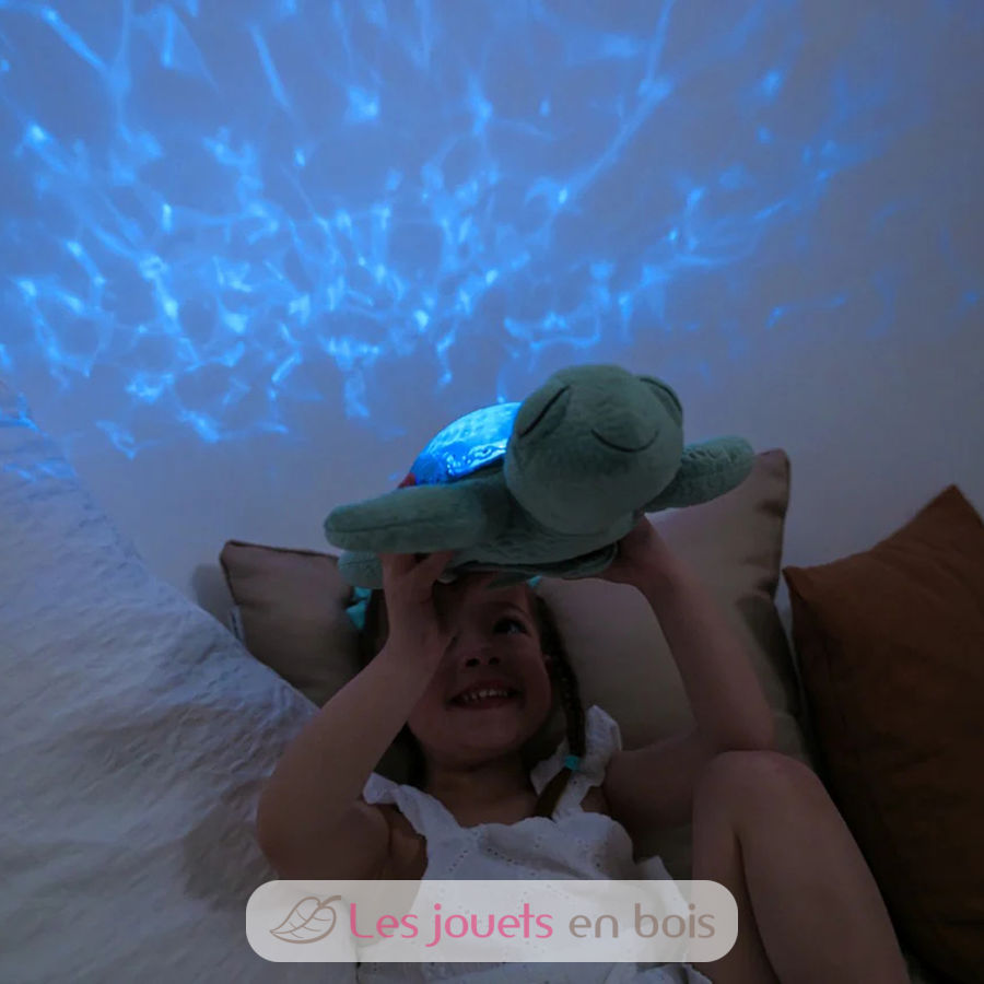 Dieses Tranquil Turtle-Nachtlicht beruhigt Babys und beruhigt Kinder, die Angst vor der Dunkelheit haben. Tagsüber ist es ein weicher Plüsch, nachts verwandelt es sich in ein Nachtlicht. Der Unterwasserlichteffekt ist dank der Projektion bewegter Wellen magisch. Melodien und weiße Geräusche beruhigen die Kleinen und entführen sie in das Land der Träume.