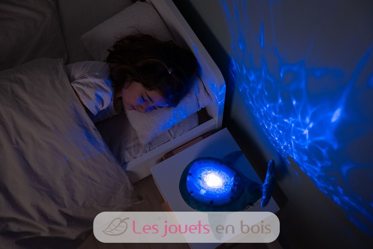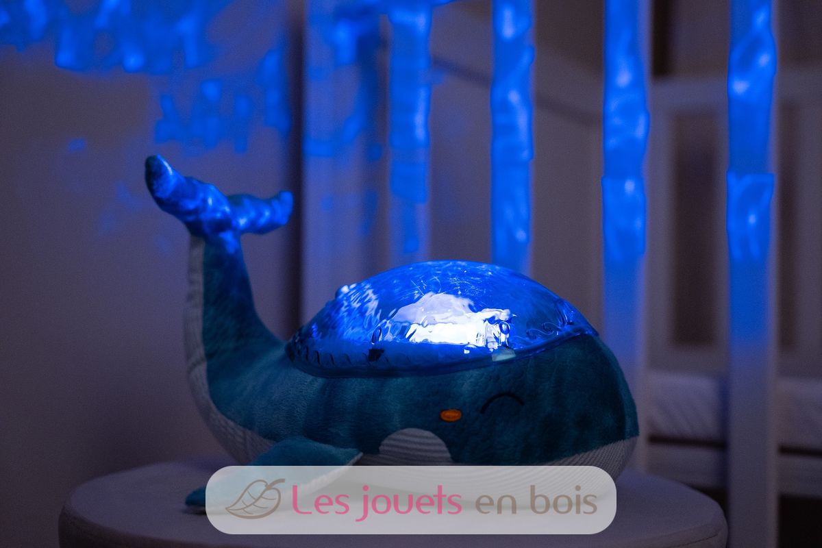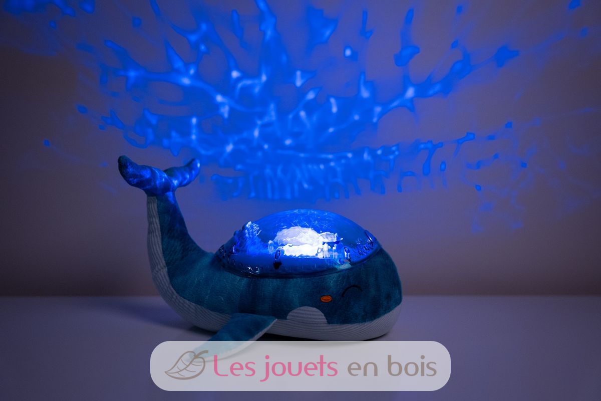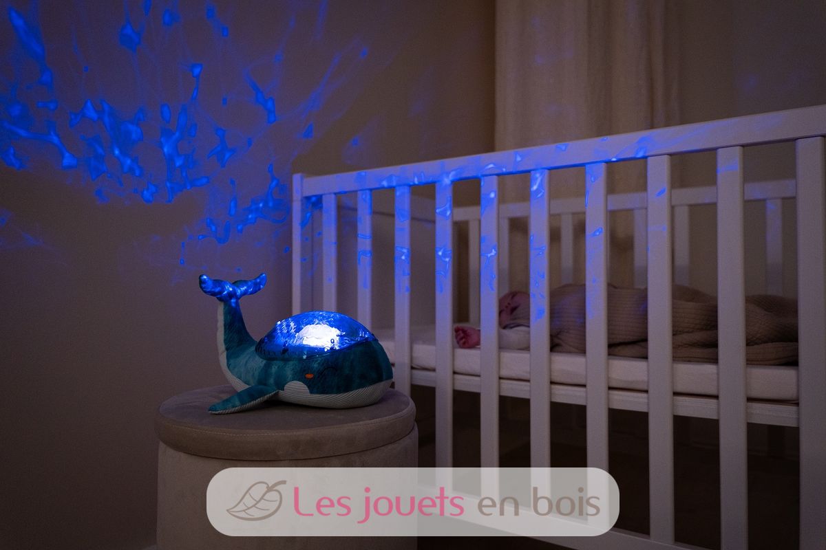 Dieses Tranquil Whale-Nachtlicht beruhigt Babys und beruhigt Kinder, die Angst vor der Dunkelheit haben. Tagsüber ist es ein weicher Plüsch, nachts verwandelt es sich in ein Nachtlicht. Der Unterwasserlichteffekt ist dank der Projektion bewegter Wellen magisch. Melodien und weiße Geräusche beruhigen die Kleinen und entführen sie in das Land der Träume.